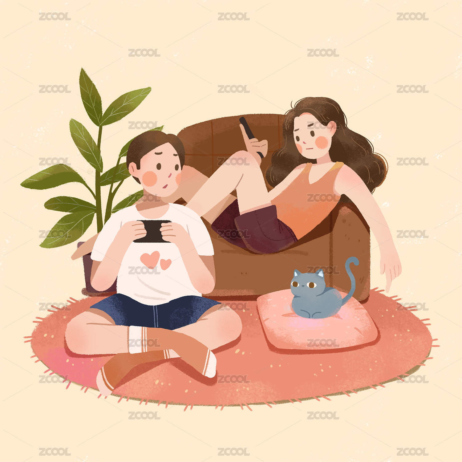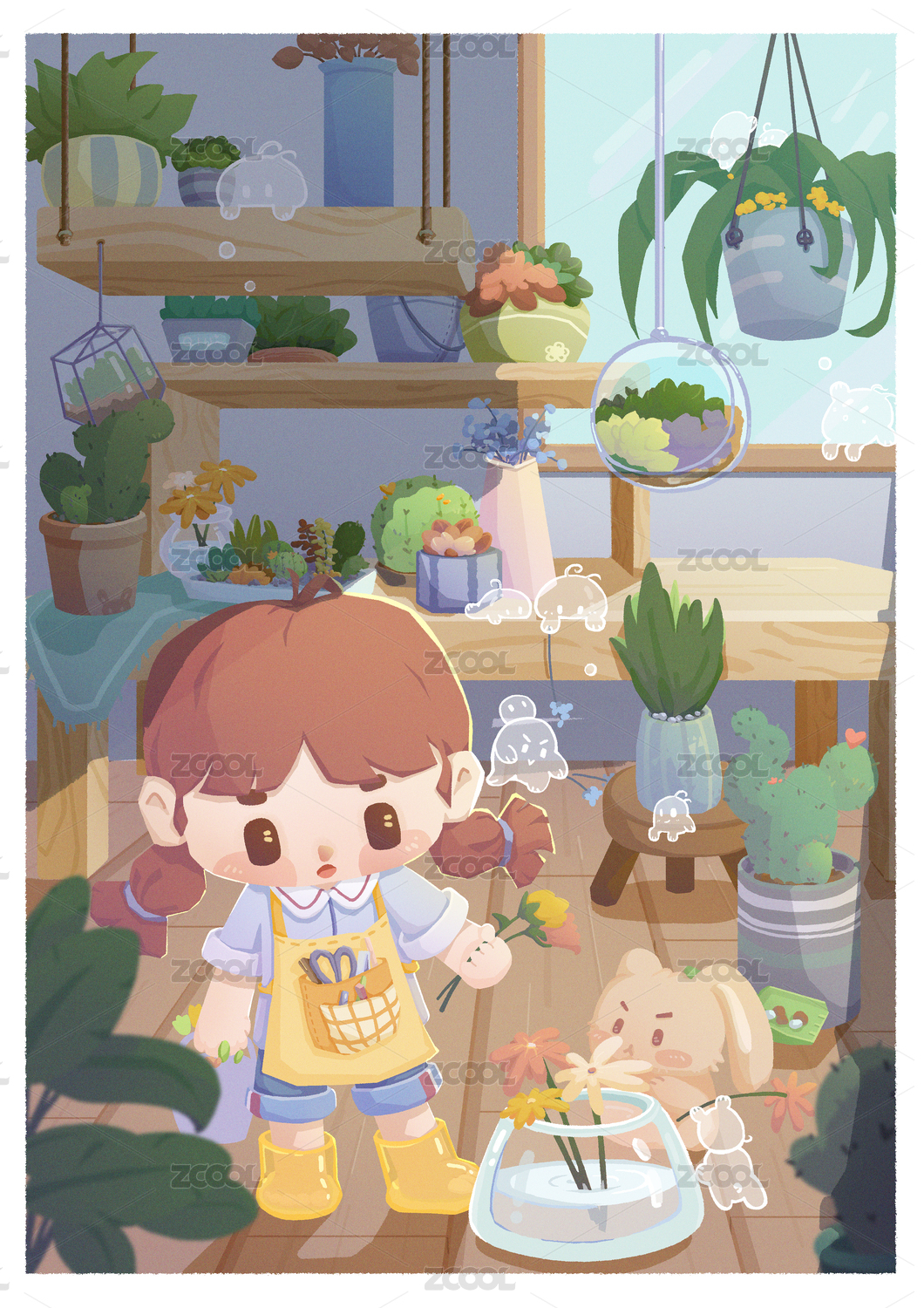 扁平化畫風(fēng)卡通女生女孩頭像插畫