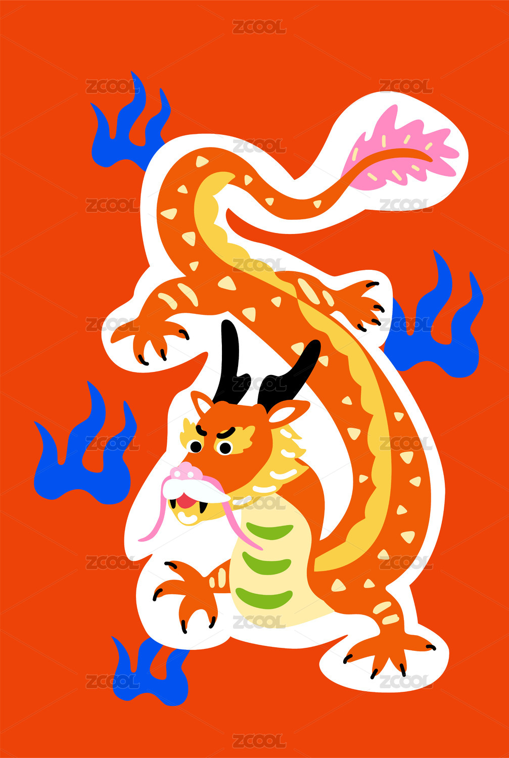 傳統(tǒng)東方龍扁平畫風(fēng)龍年裝飾畫