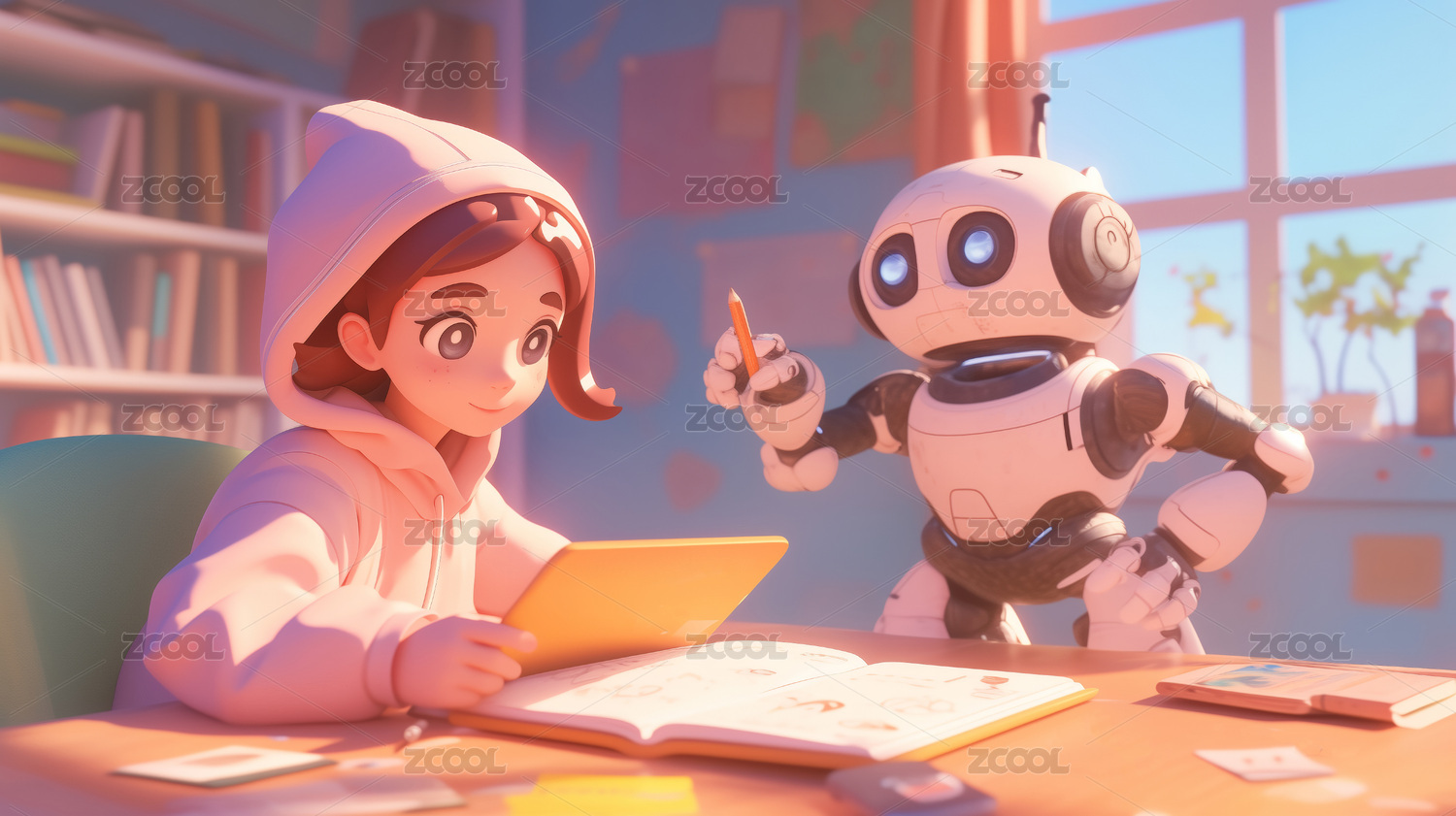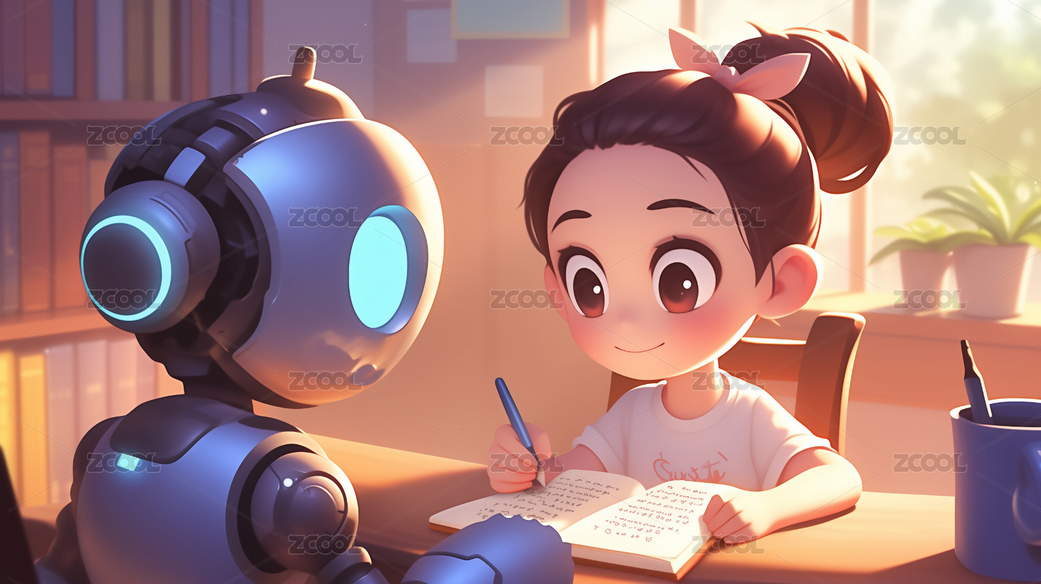 一個教育機器人在輔助學(xué)生學(xué)習(xí)