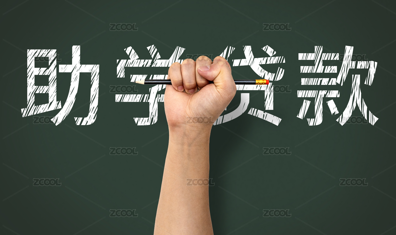 手握鉛筆背后的黑板寫著助學(xué)貸款