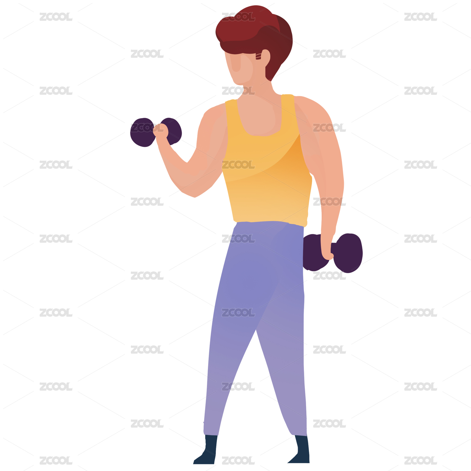 卡通體育健身運動啞鈴操插畫