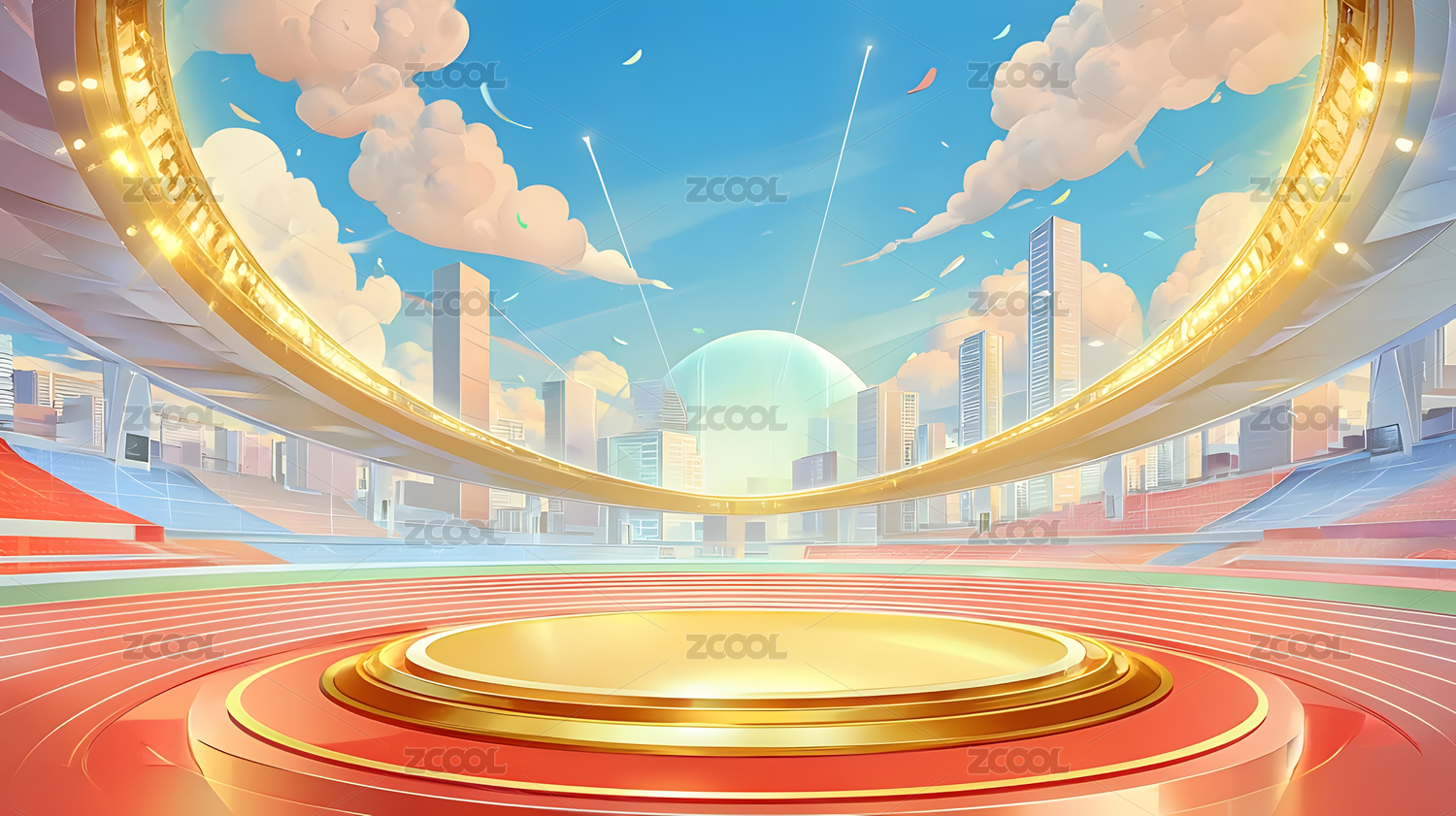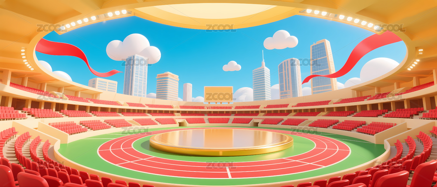 卡通體育館各種賽事比賽頒獎舞臺城市插畫