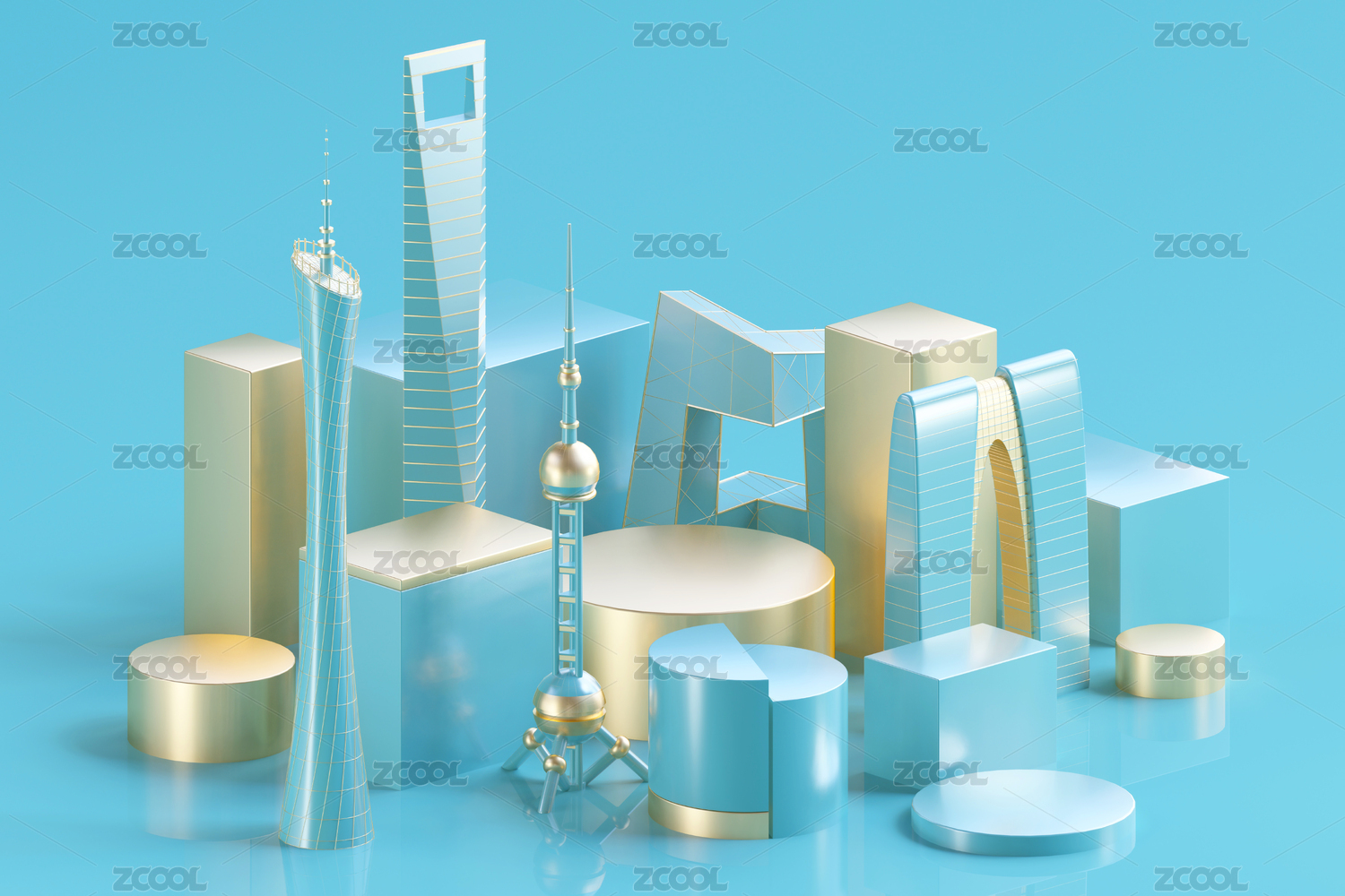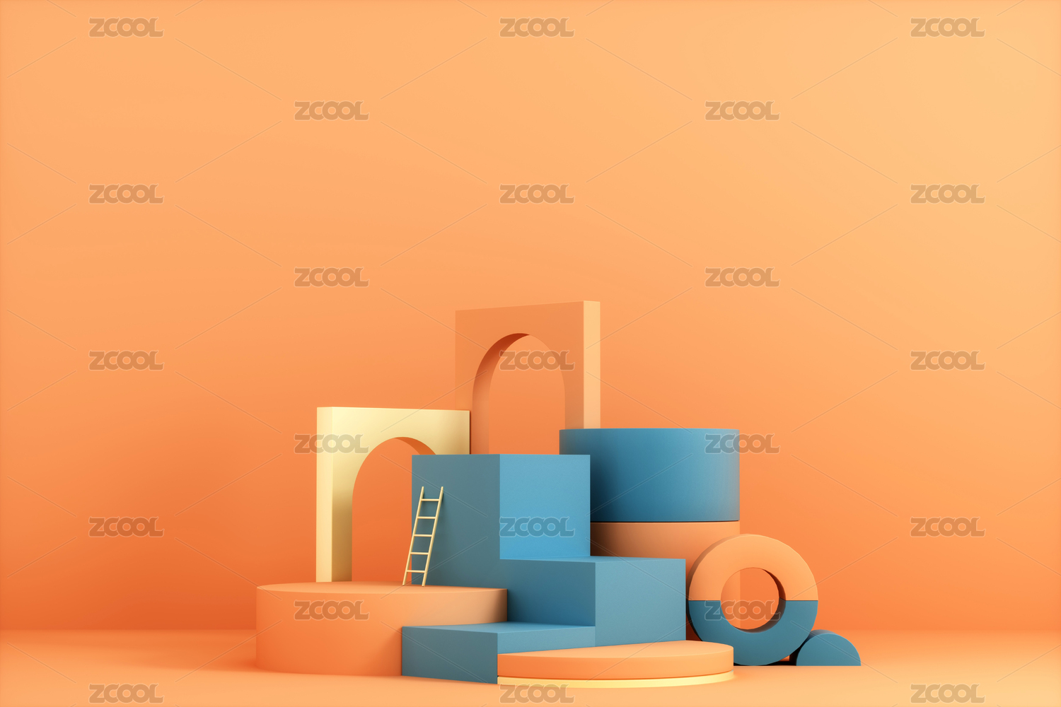 幾何形狀堆積的抽象圖表、藍色背景、方形幾何圖。