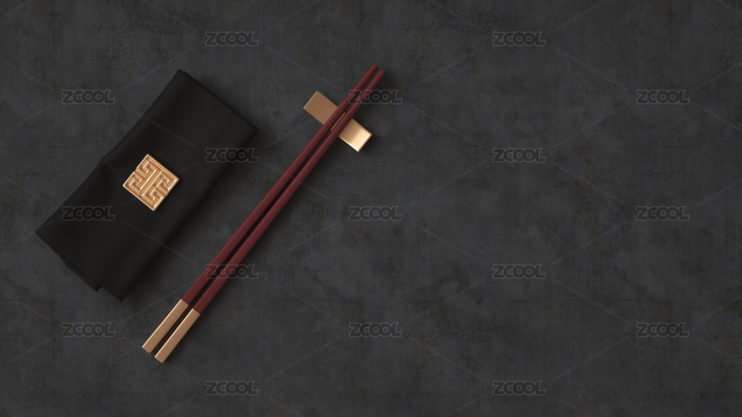 中國風題材的中式餐具套裝,筷子、筷子托和餐巾,3d渲染
