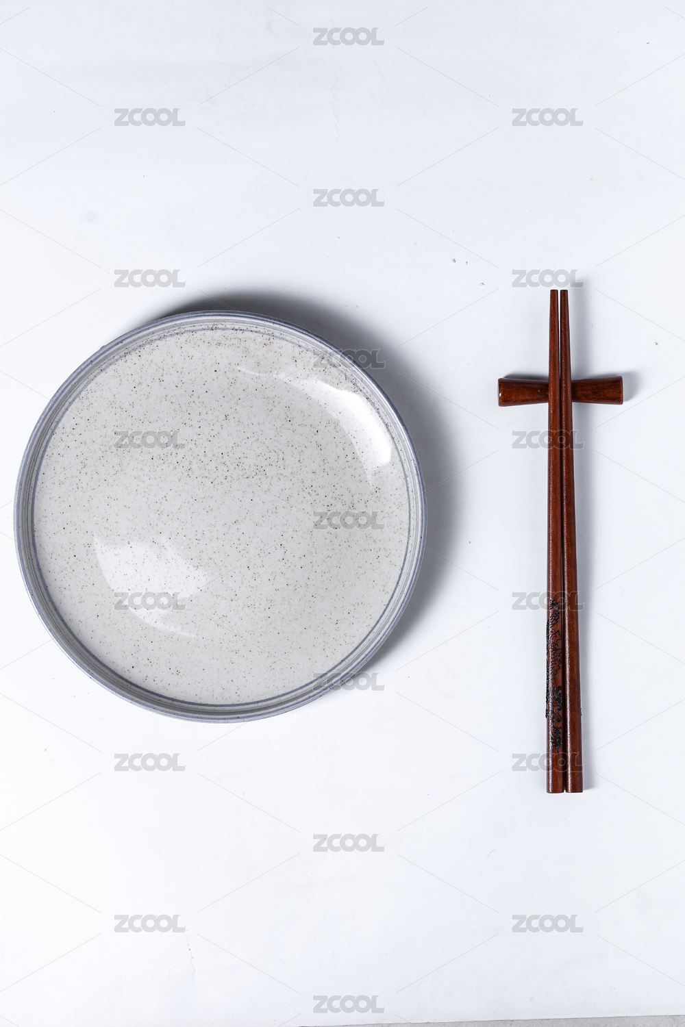 一雙筷子和一只碟子 中式餐具手繪插畫元素