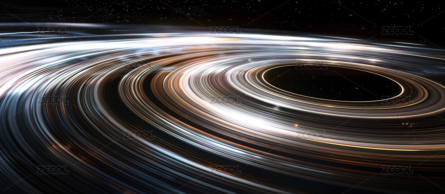 宇宙太空中金色燦爛且迷人的光軌環(huán)形圖案