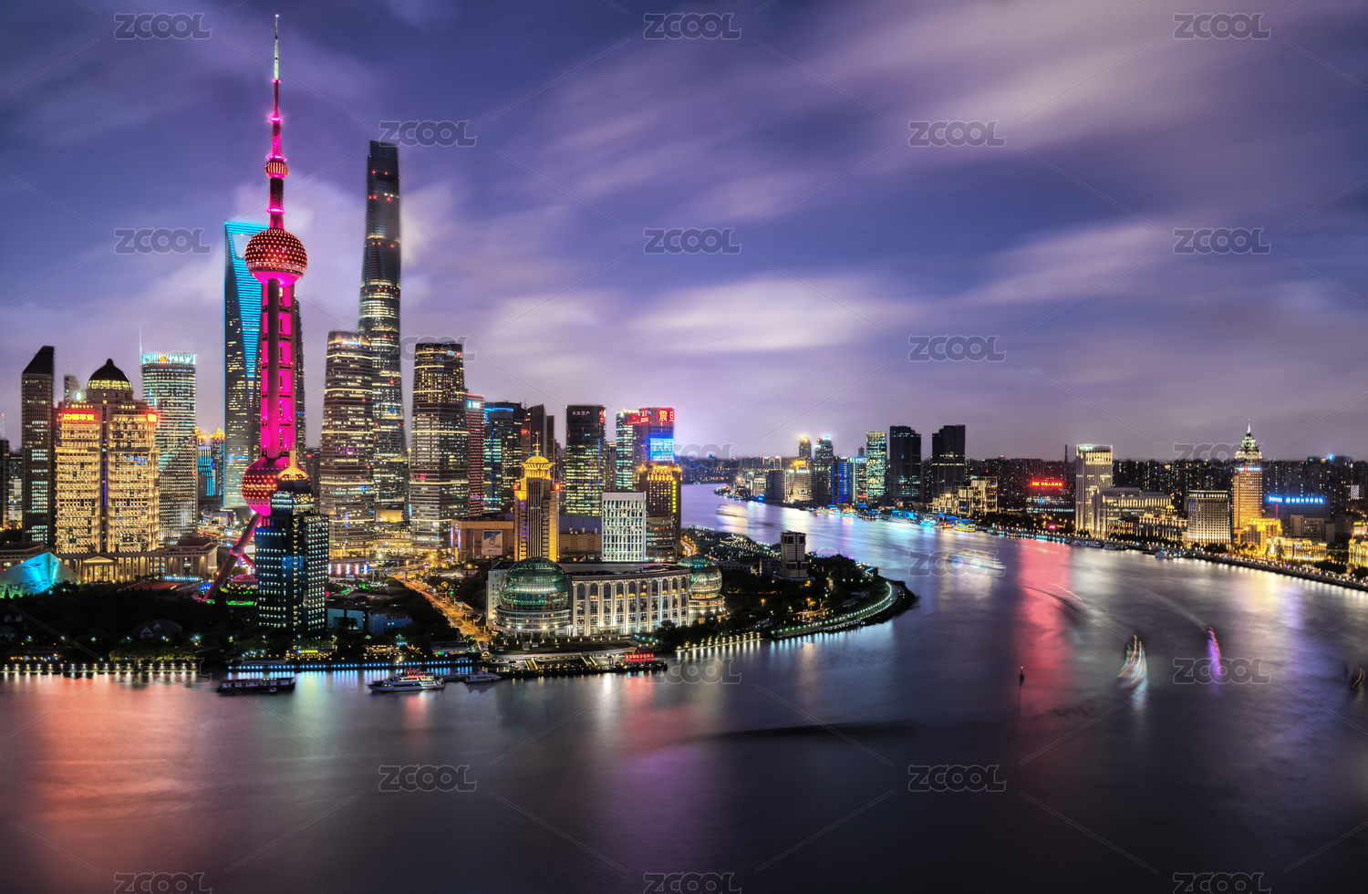 夜晚迷人的上海陸家嘴金融中心和外灘景色