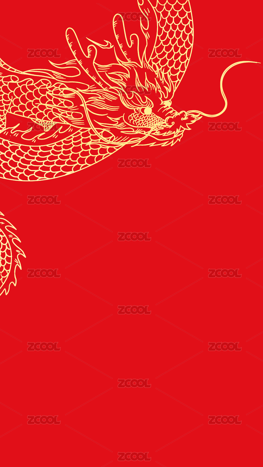 豎版金色線稿中國龍