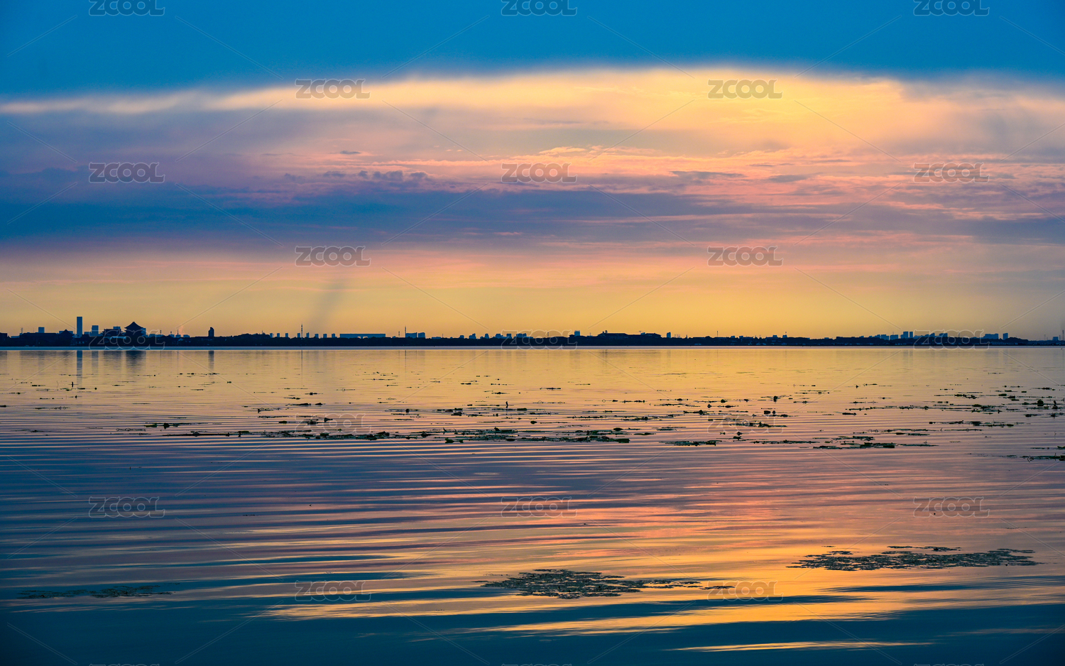 中國蘇州陽澄湖的晚霞