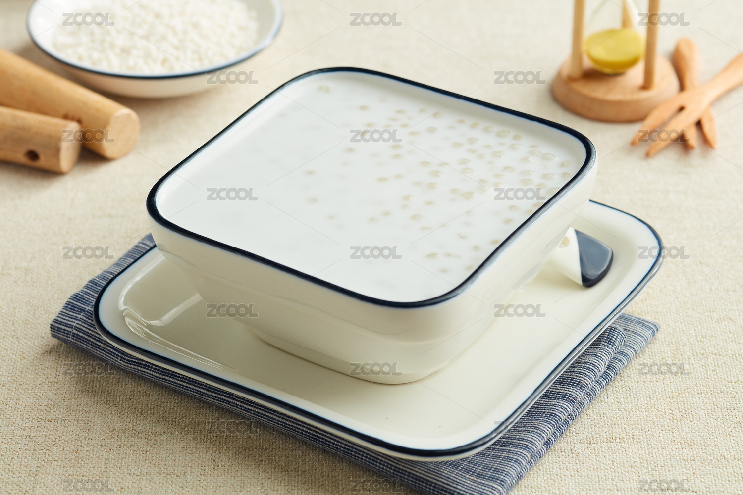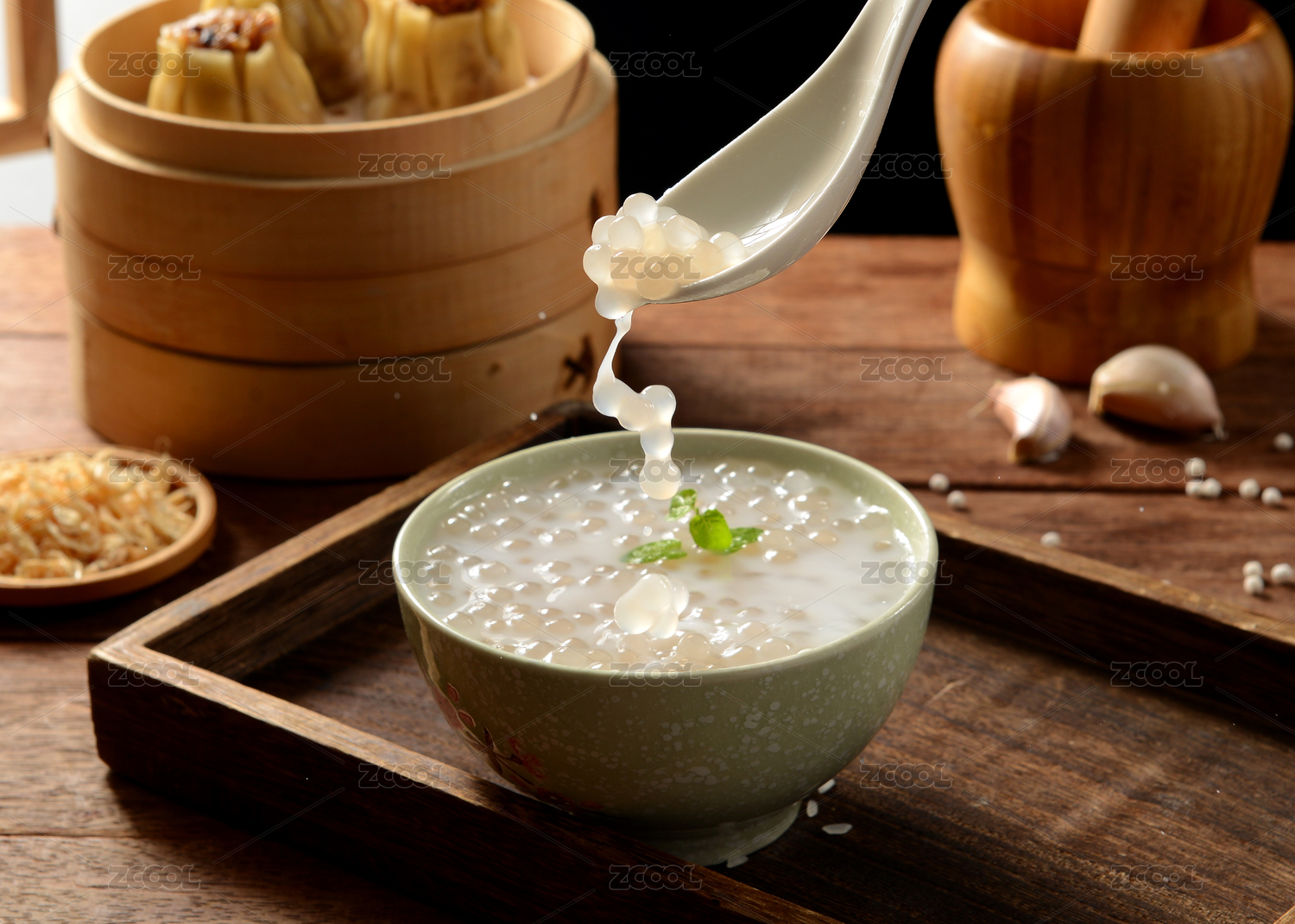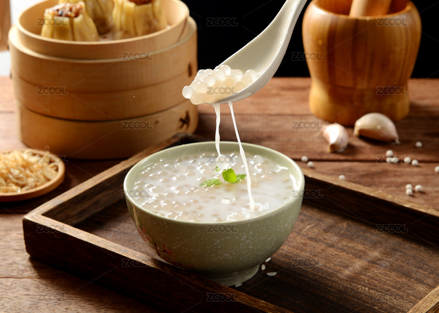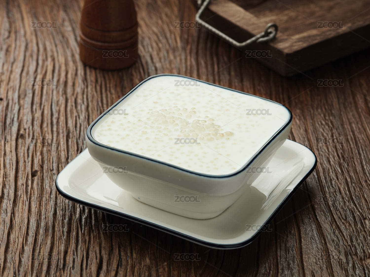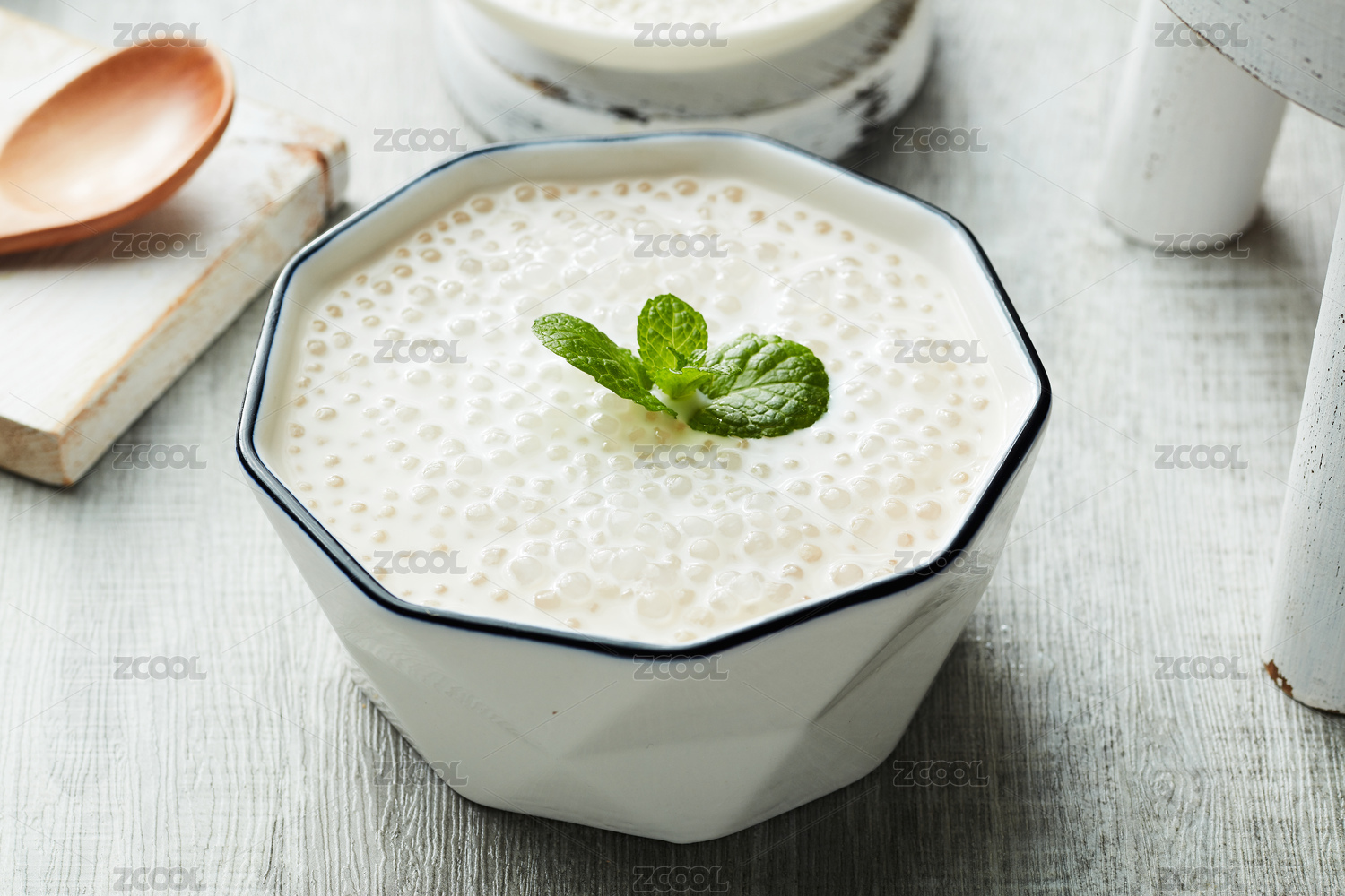 室內(nèi)餐桌上的一碗芋圓椰汁西米露甜品
