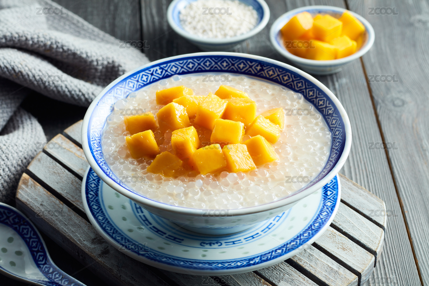 小碗里的小吃甜品芒果椰汁西米露
