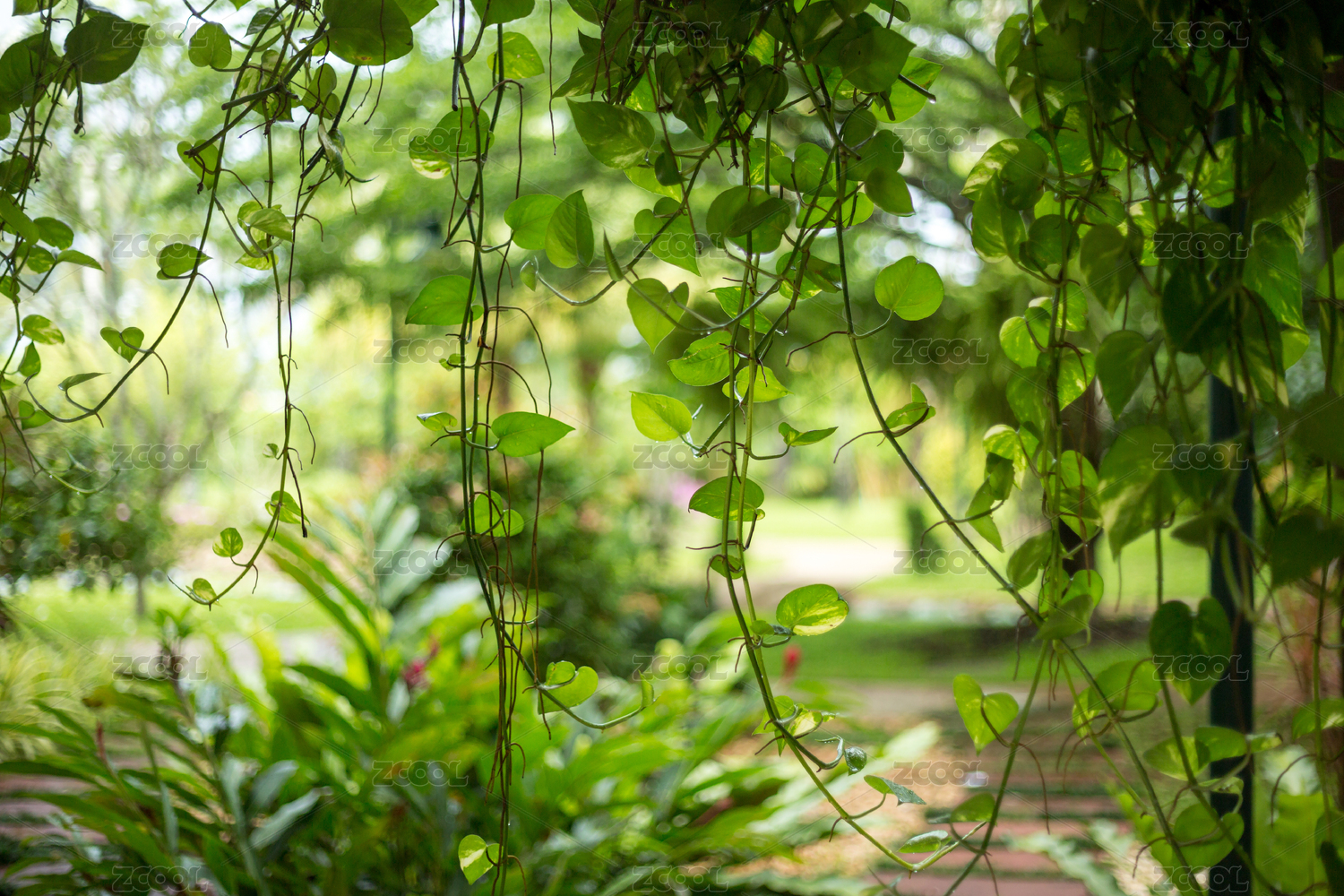 公園里垂下的綠蘿藤條植物