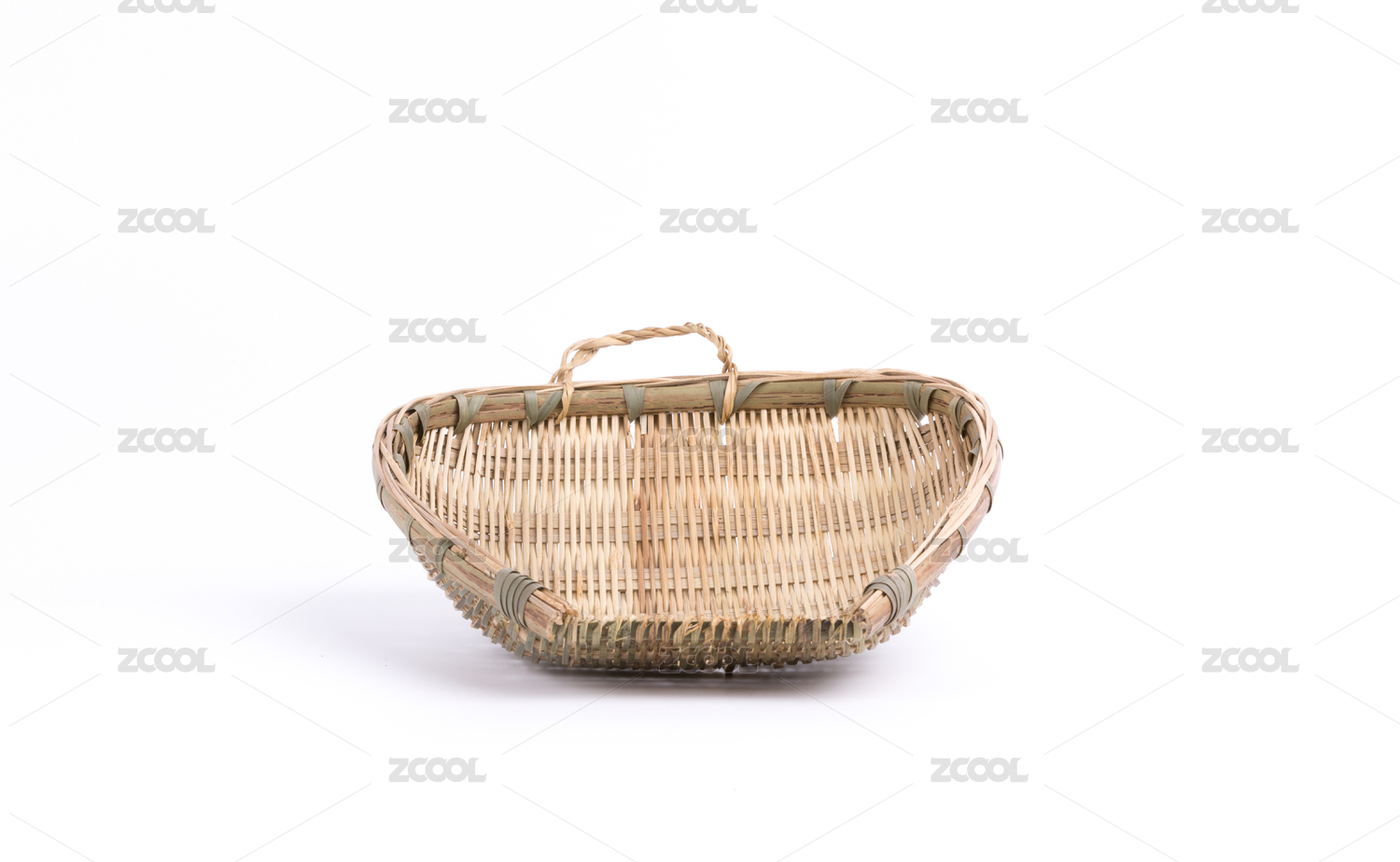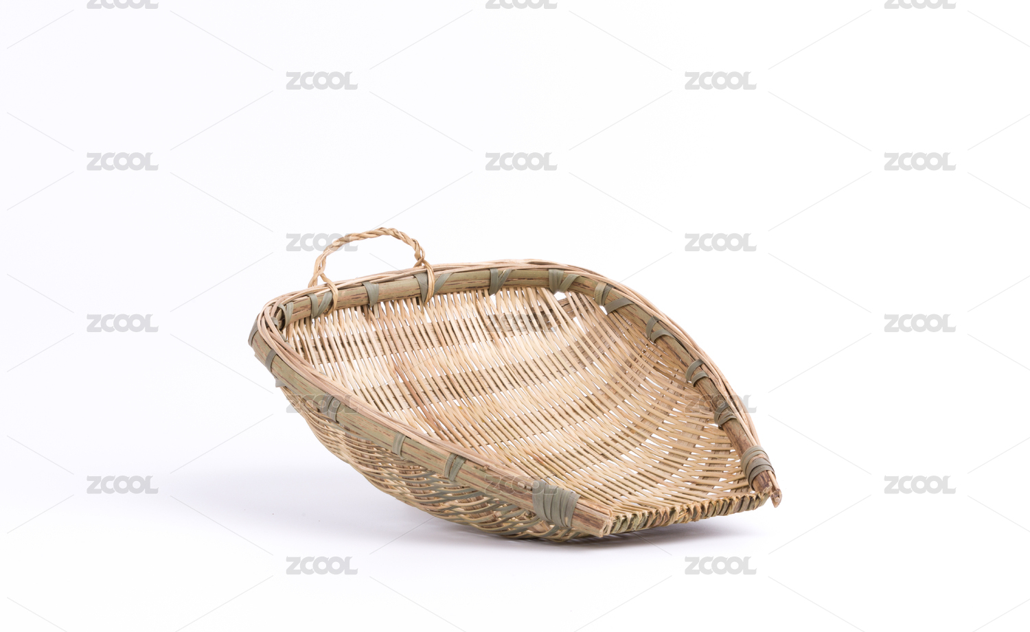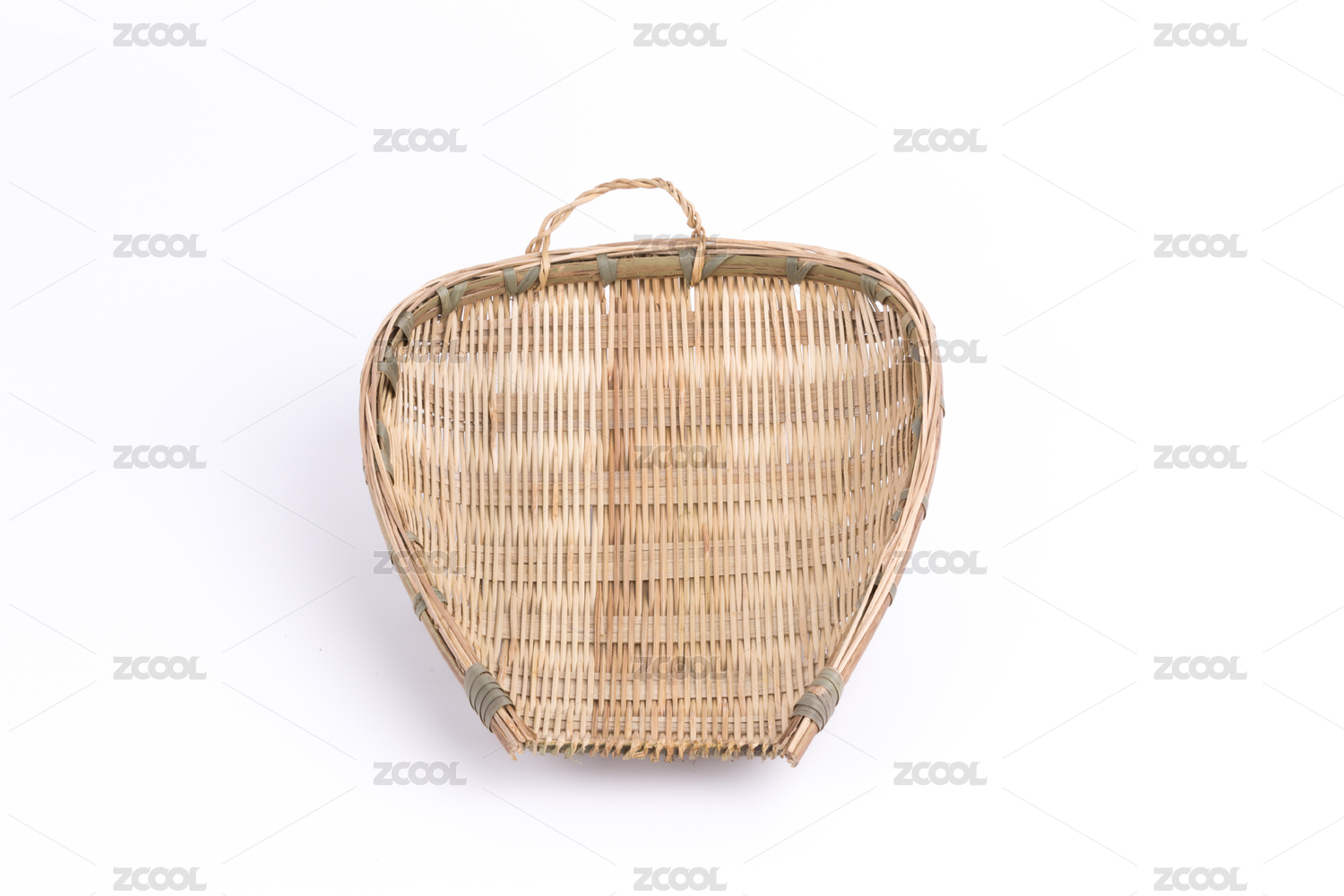 白色背景下的中國式手工編織簸箕