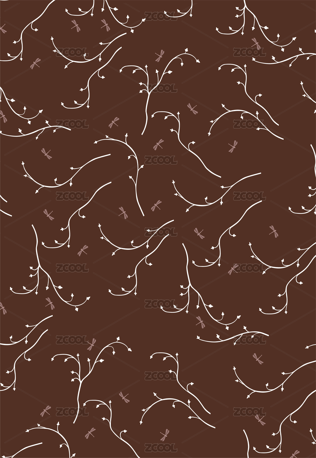 無縫圖案印花手繪藤條蜻蜓矢量圖