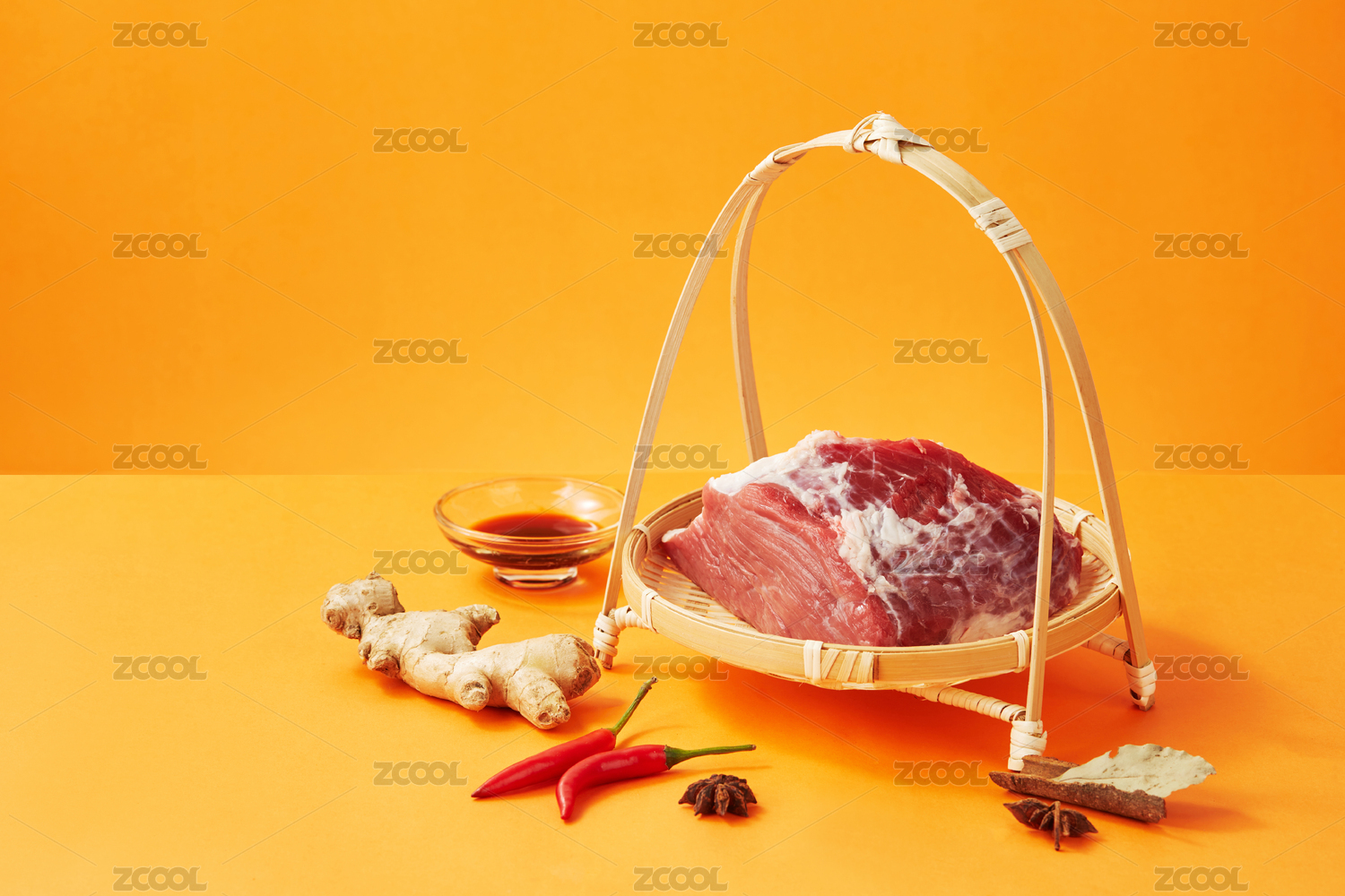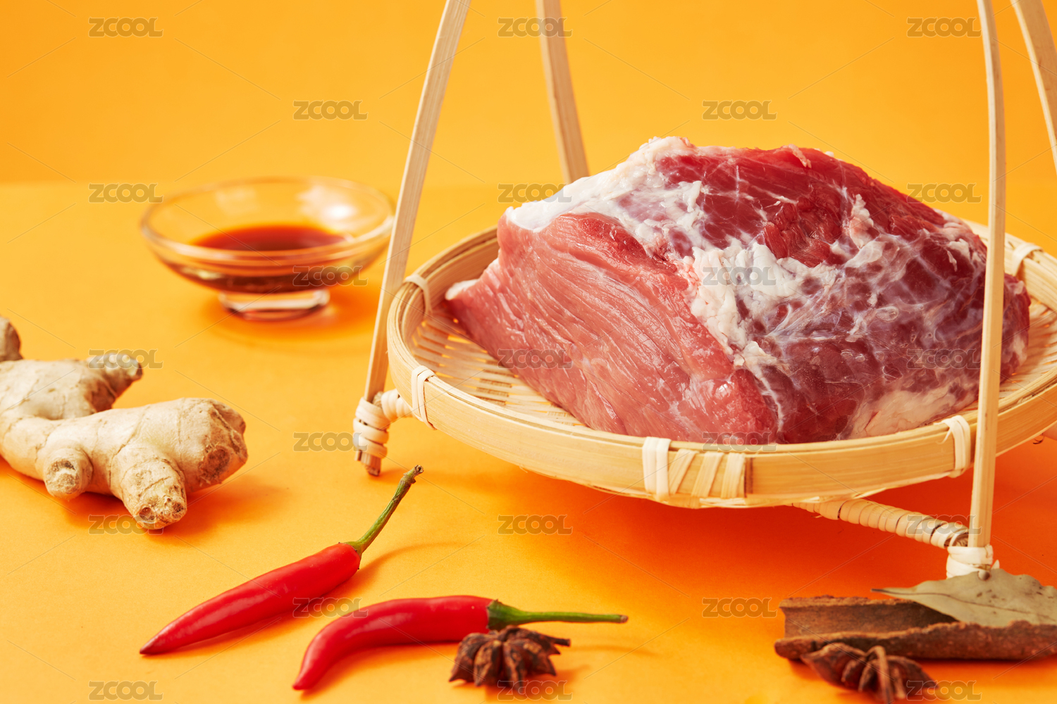 橙色背景上提籃裝的新鮮牛肉