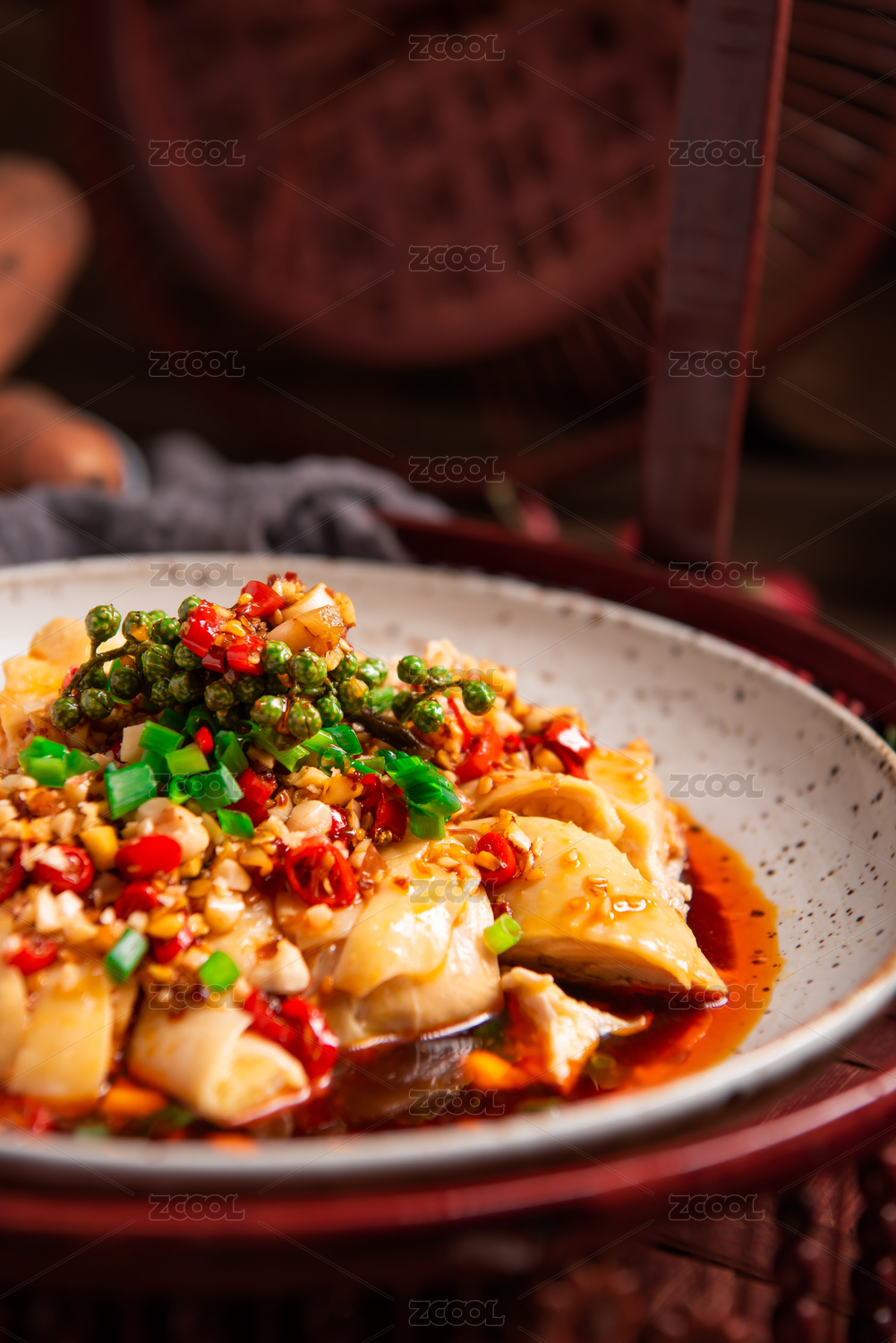 中式提籃里的一盤麻辣口水雞