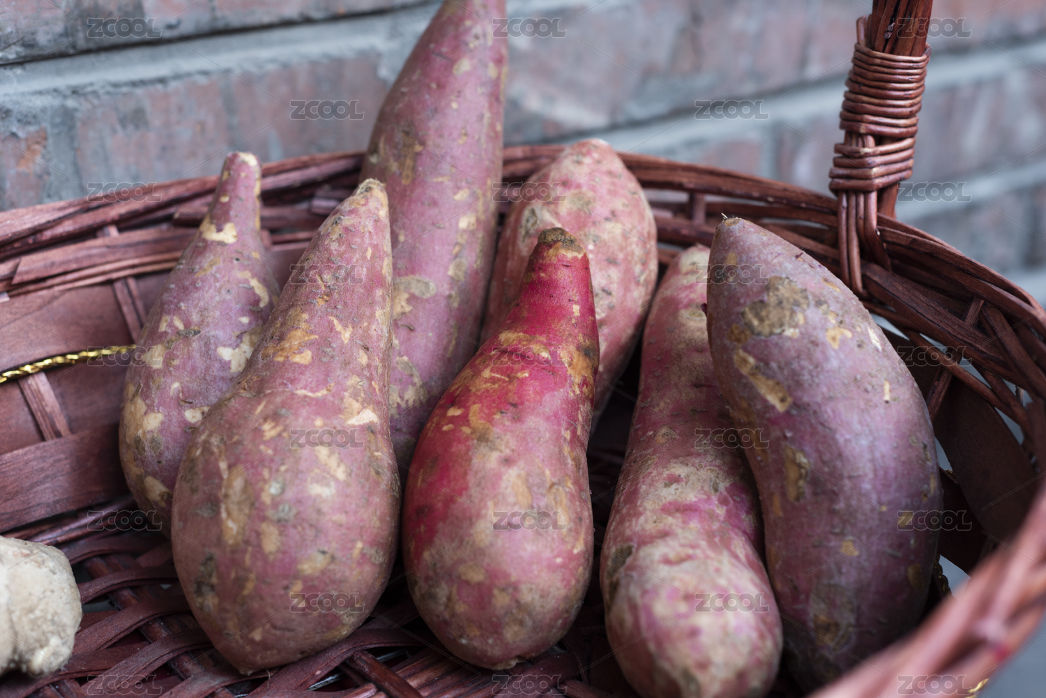 盛在提籃里的新鮮紅薯