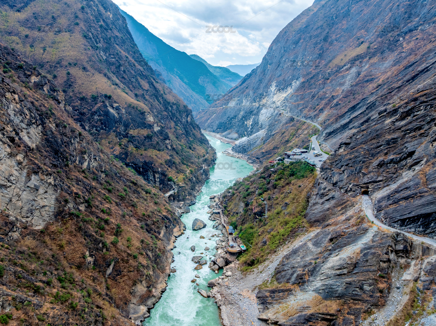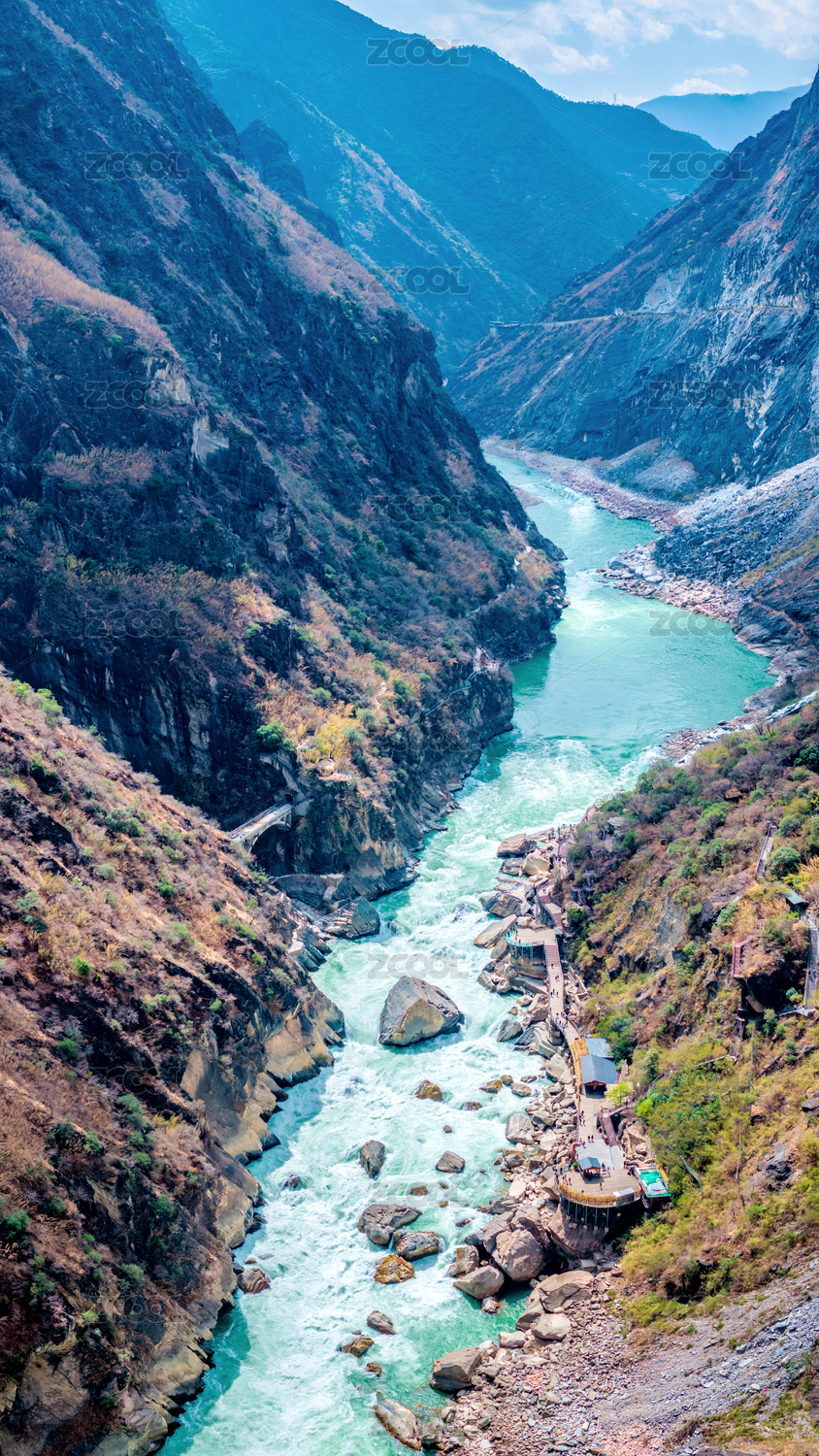 中國云南迪慶香格里拉虎跳峽航拍風(fēng)光