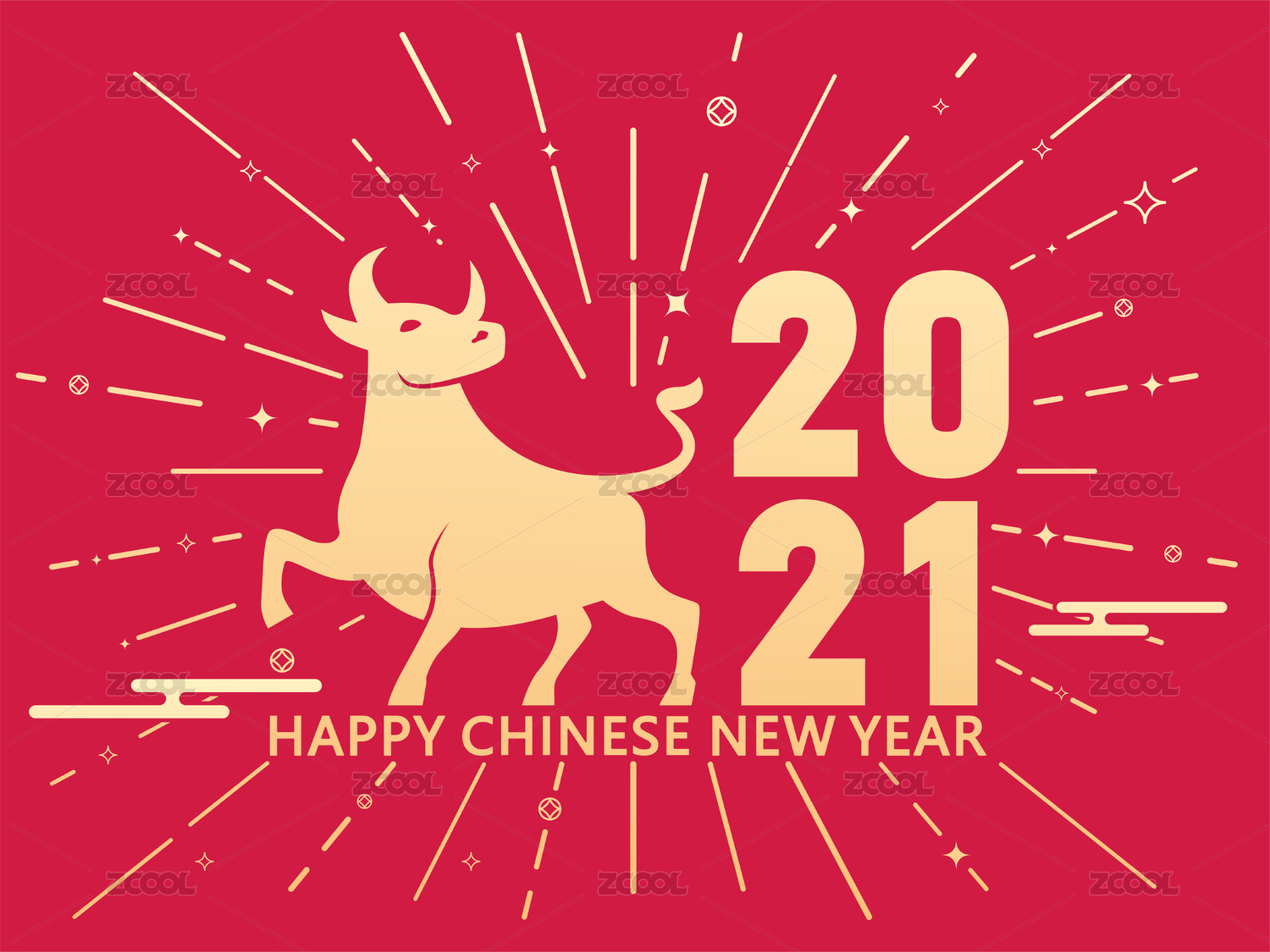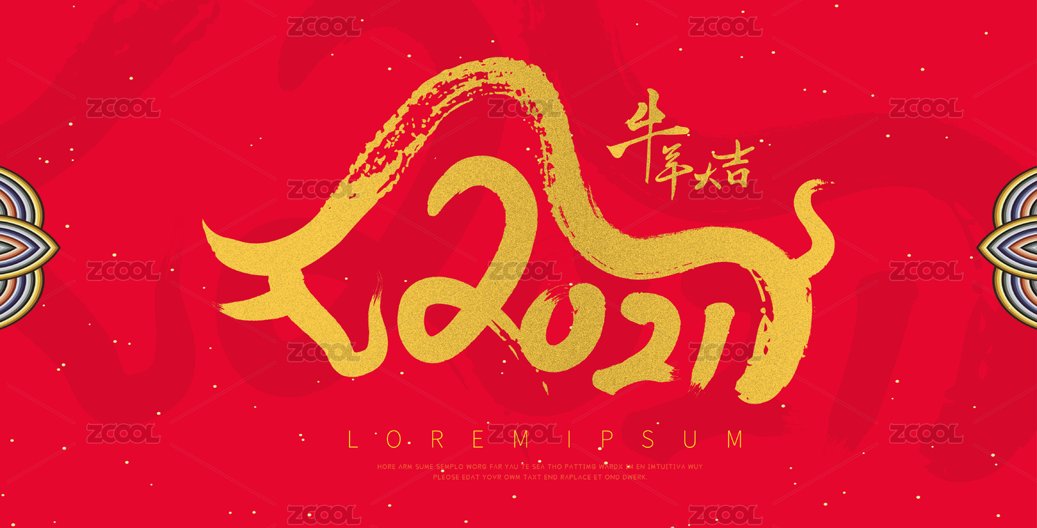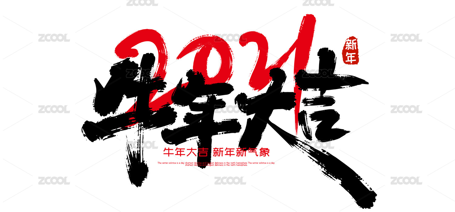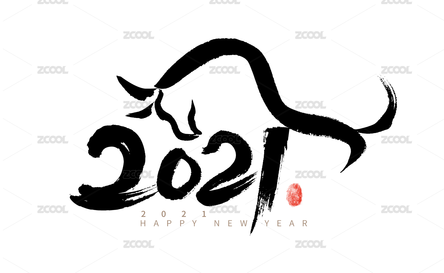 矢量中式2021牛年創(chuàng)意書法國畫組合