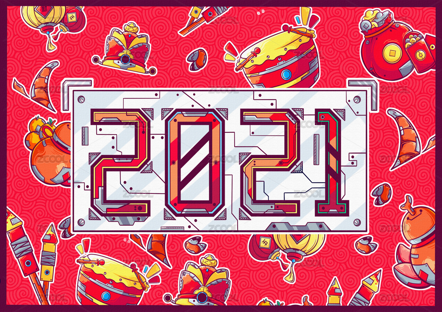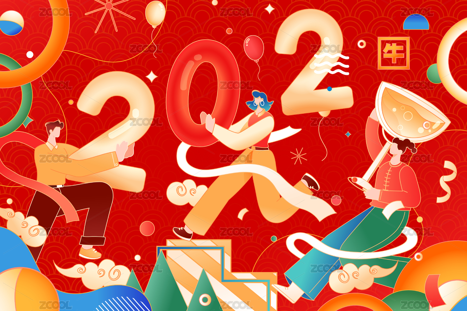 2021元旦春節(jié)新年喜慶傳統節(jié)日剪紙插畫