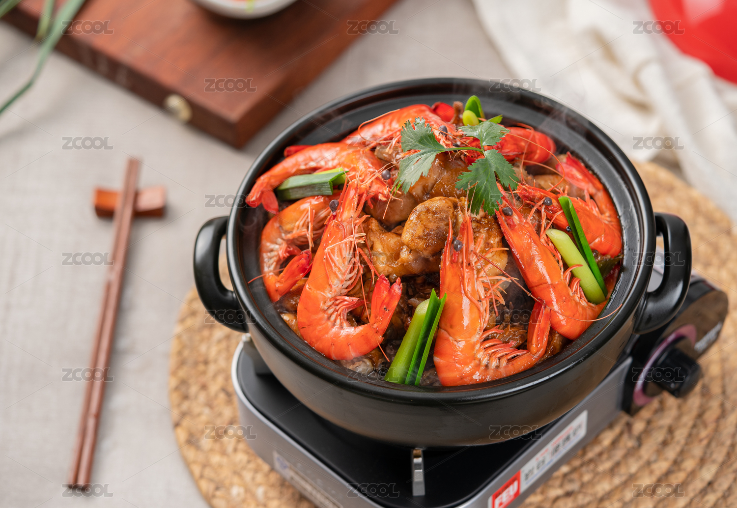 明蝦雞煲