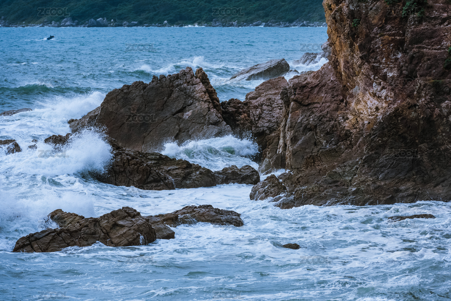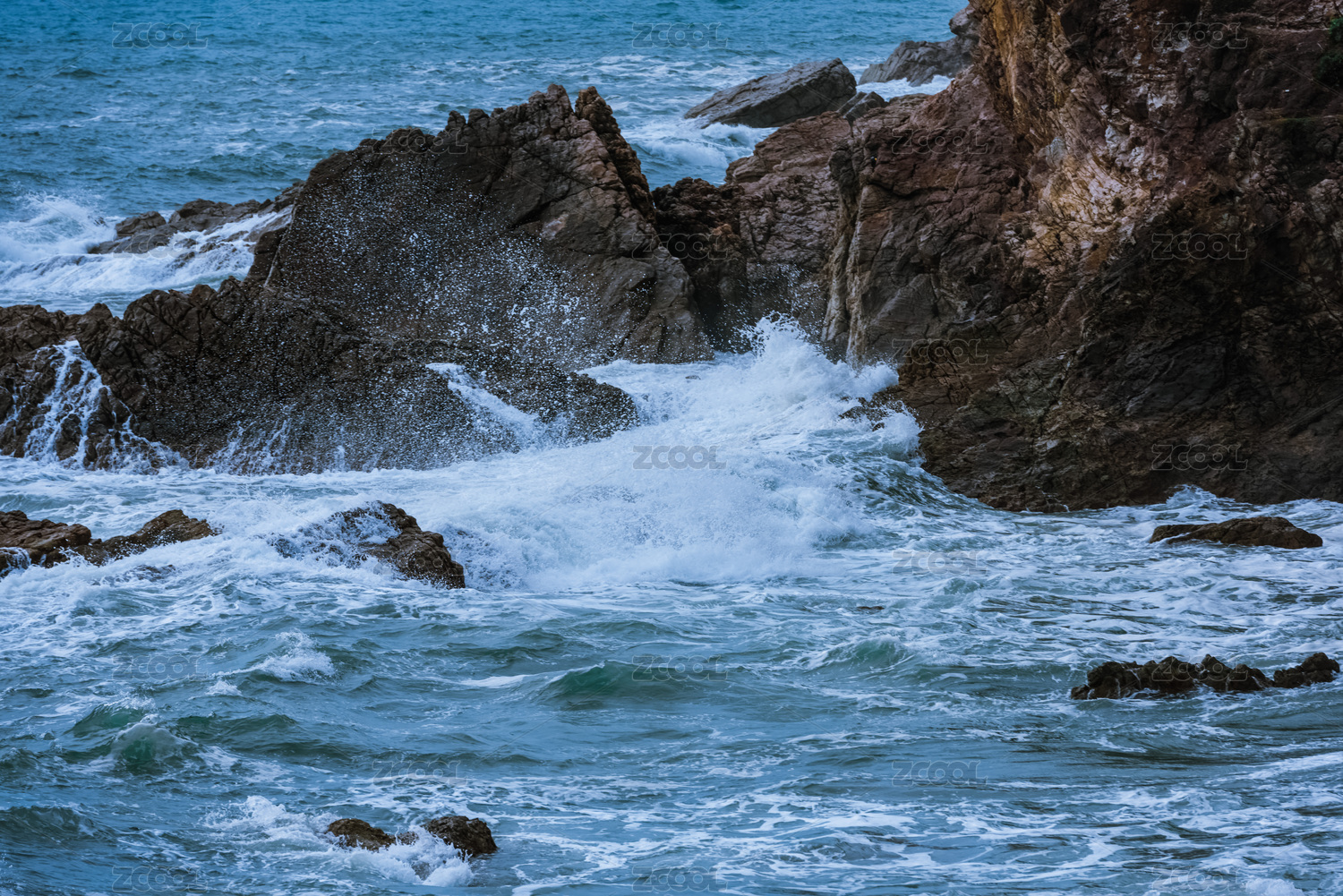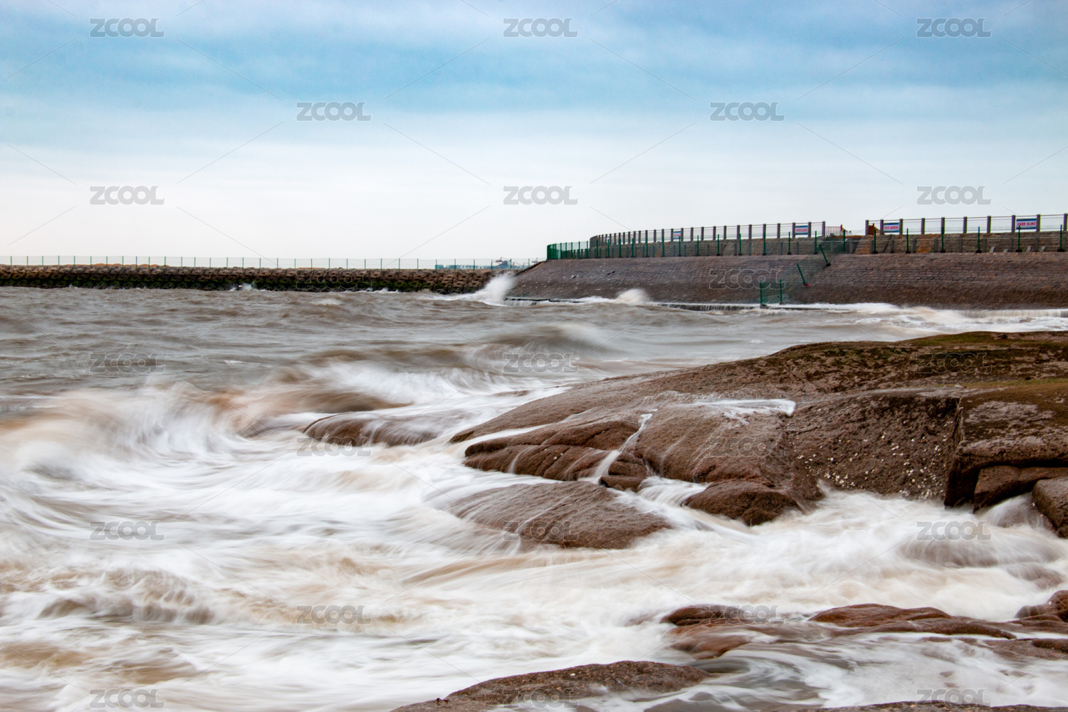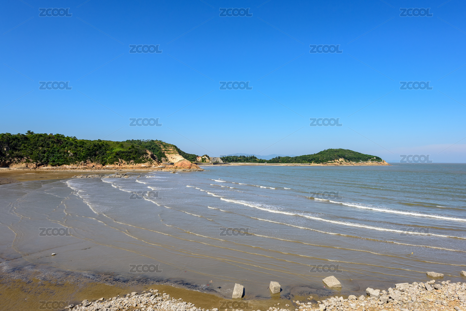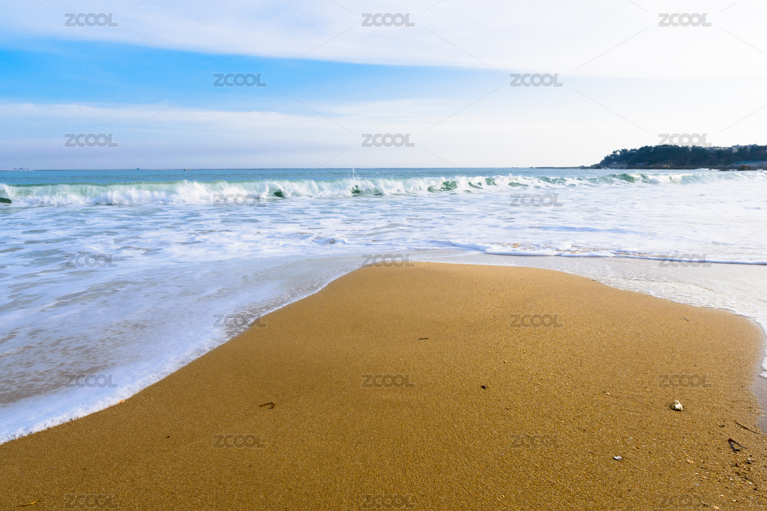 山東威海榮成海邊的金色海灘與漲潮時(shí)的海浪