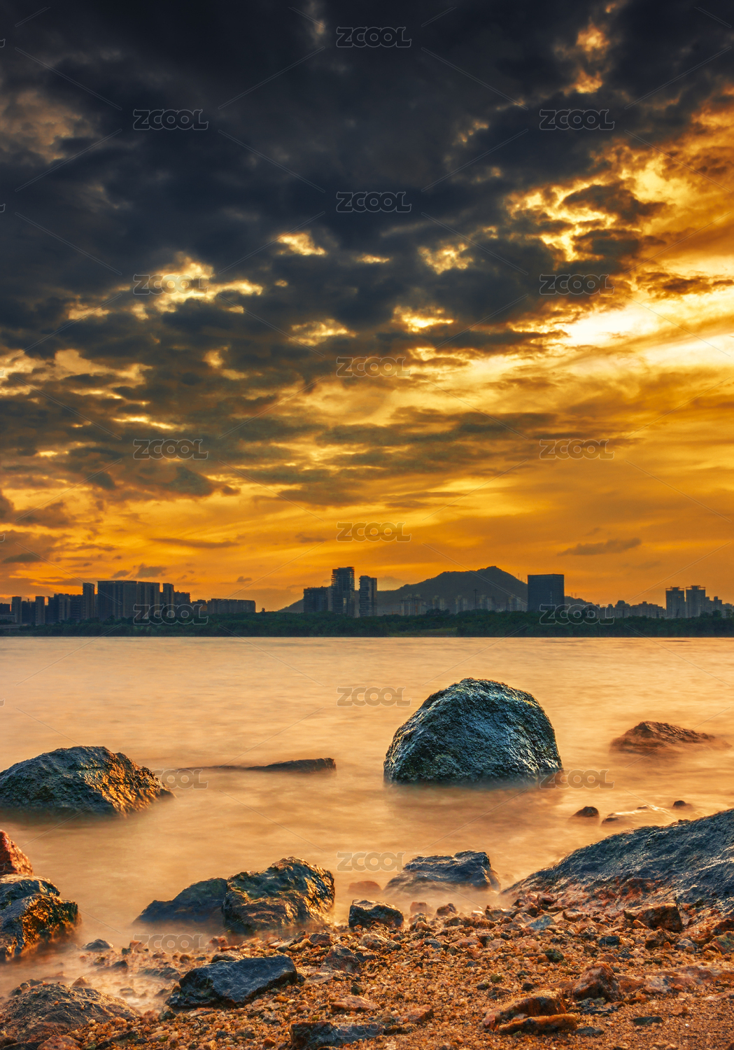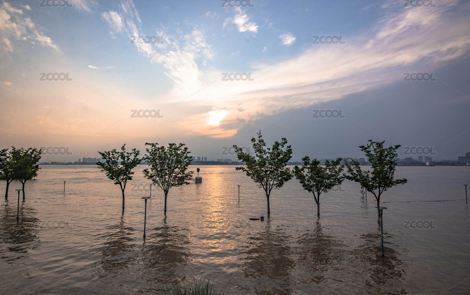 洪水期長(zhǎng)江夕陽(yáng)晚霞