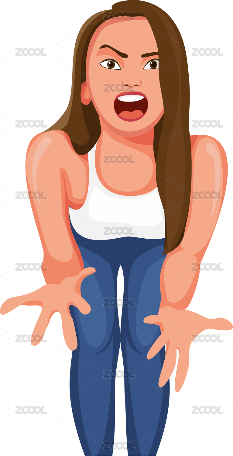 手繪卡通發(fā)火憤怒的媽媽著火了