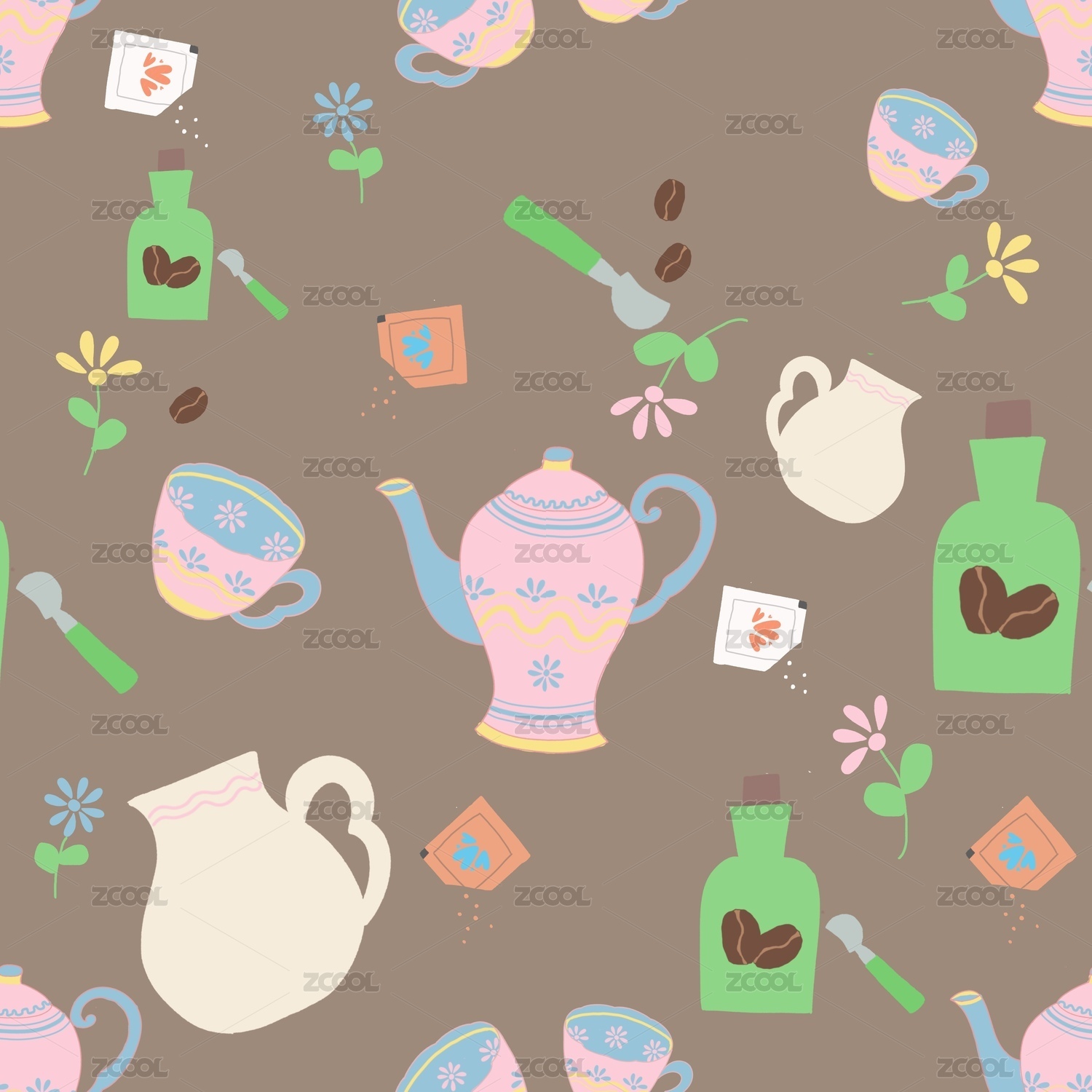 英式咖啡壺?zé)o縫連續(xù)-插畫