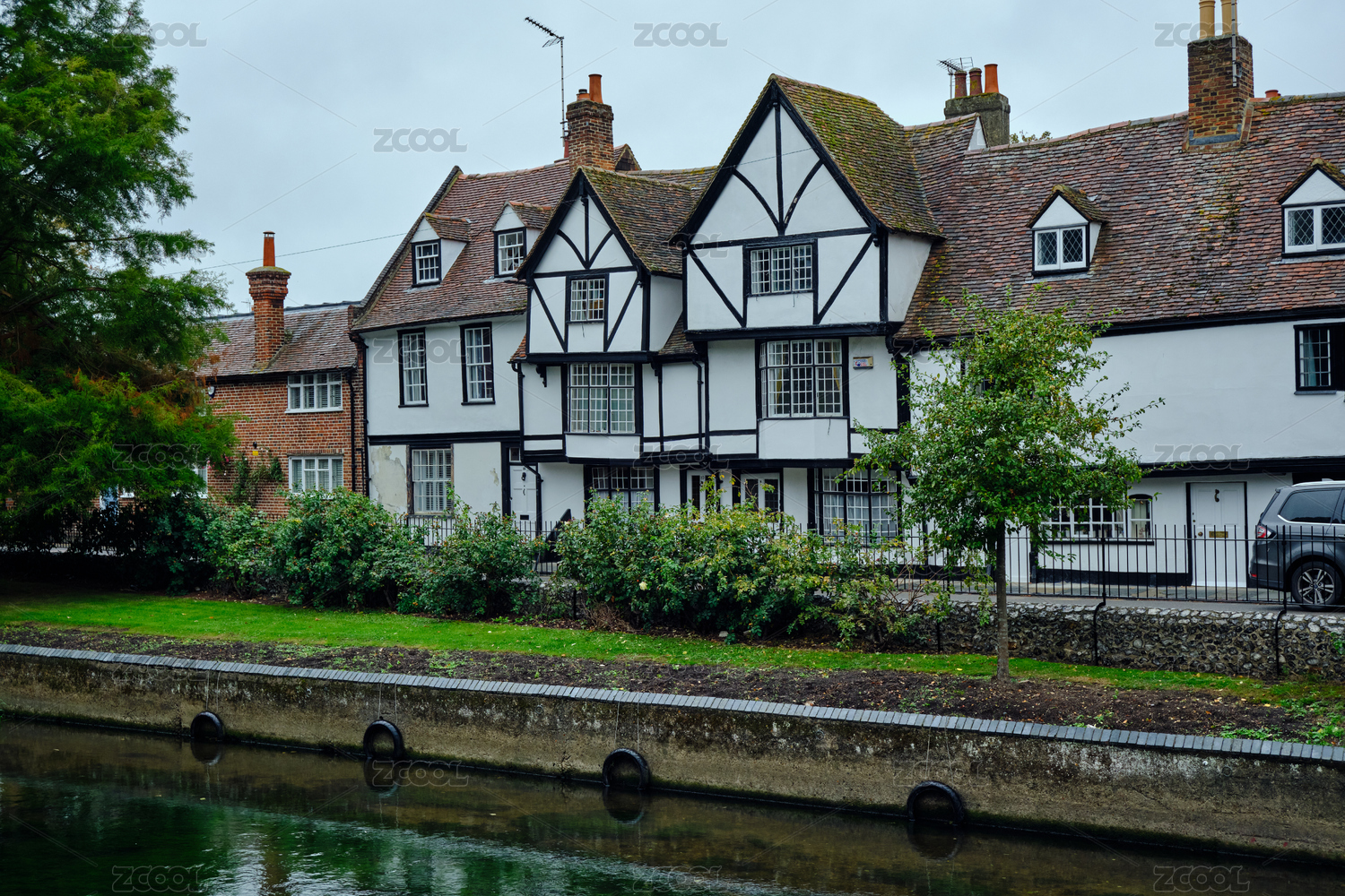 中國(guó)上海松江泰晤士小鎮(zhèn)湖邊的紅墻歐式建筑