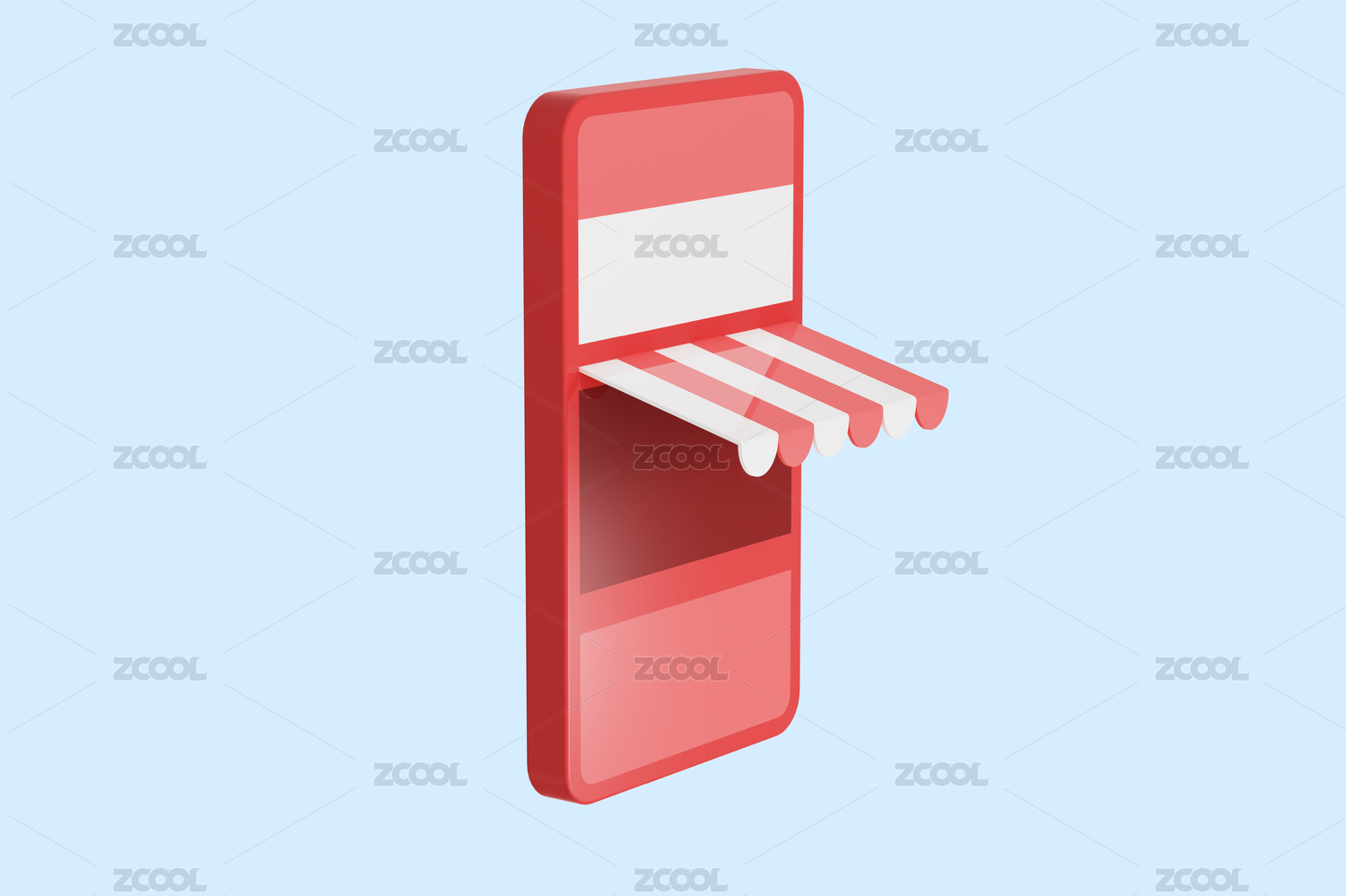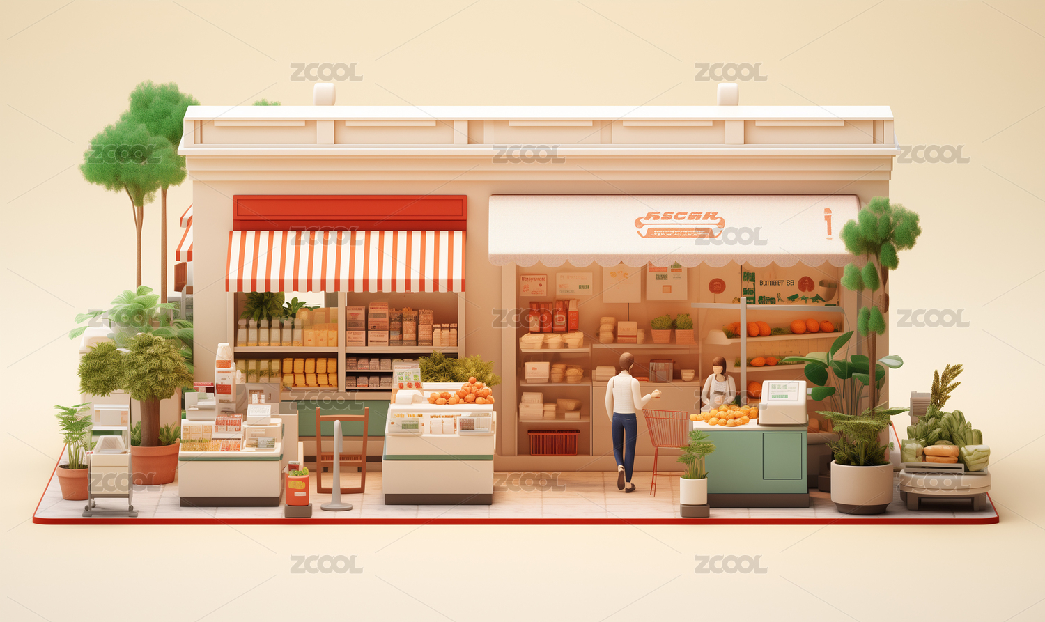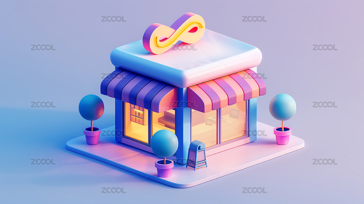 夏日互聯(lián)網(wǎng)3D人物卡通商店場景清新插畫