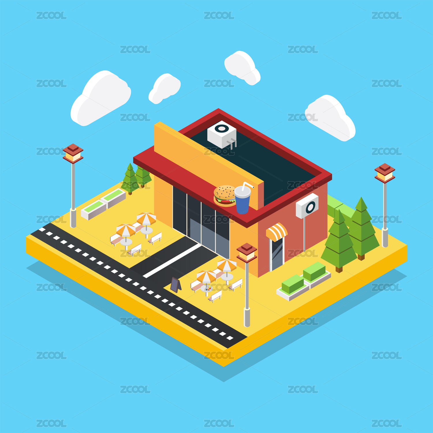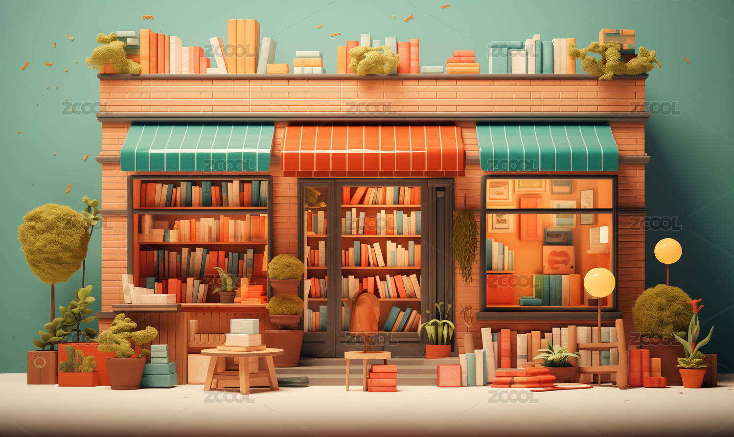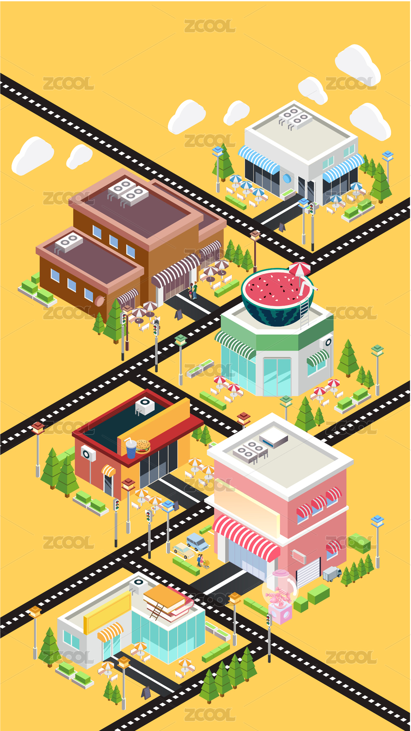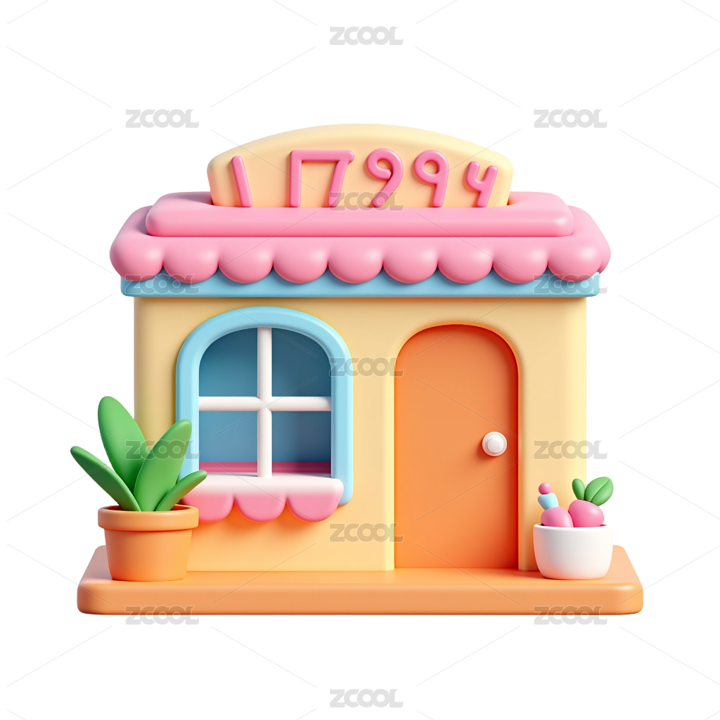 夏日互聯(lián)網(wǎng)3D人物卡通商店場景清新插畫