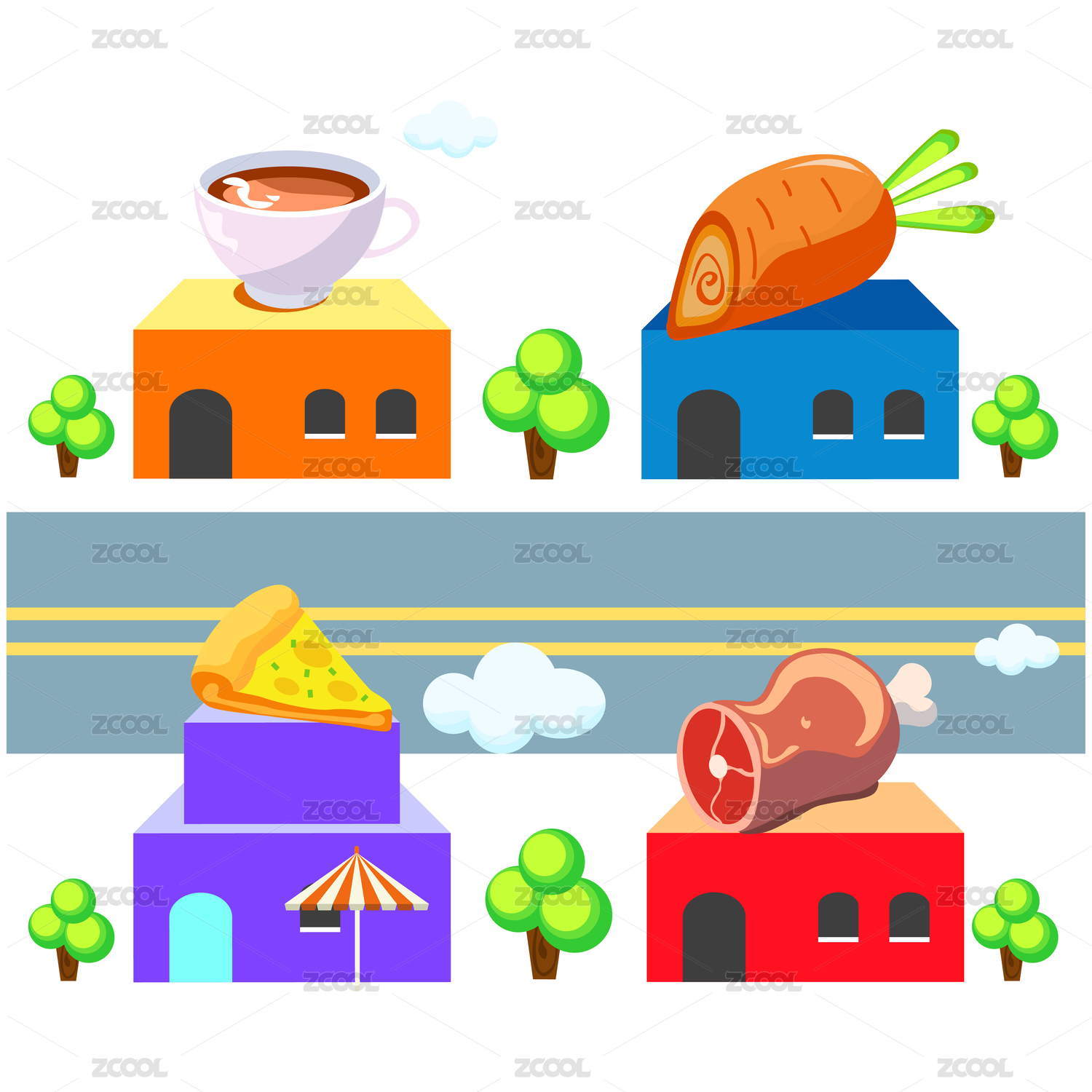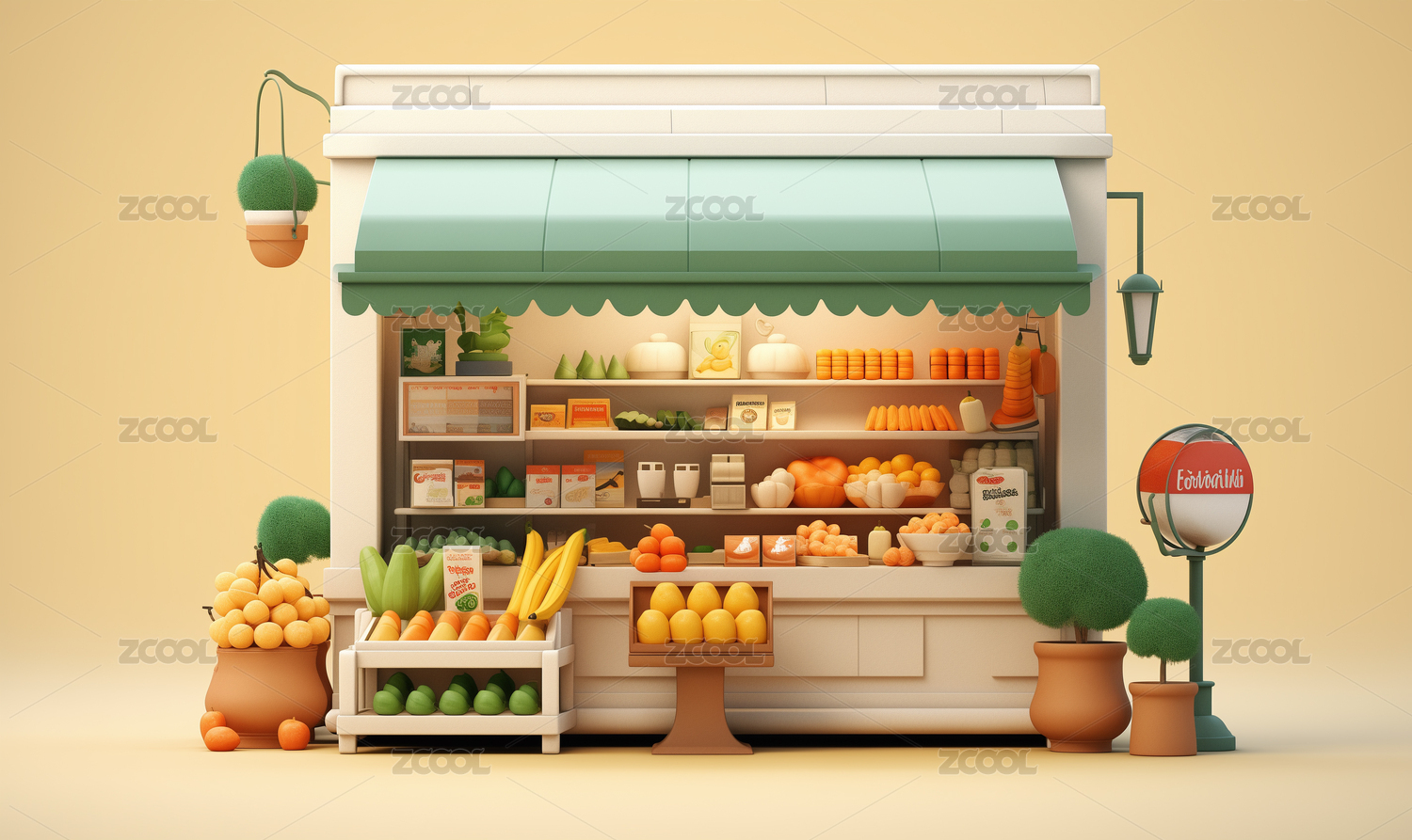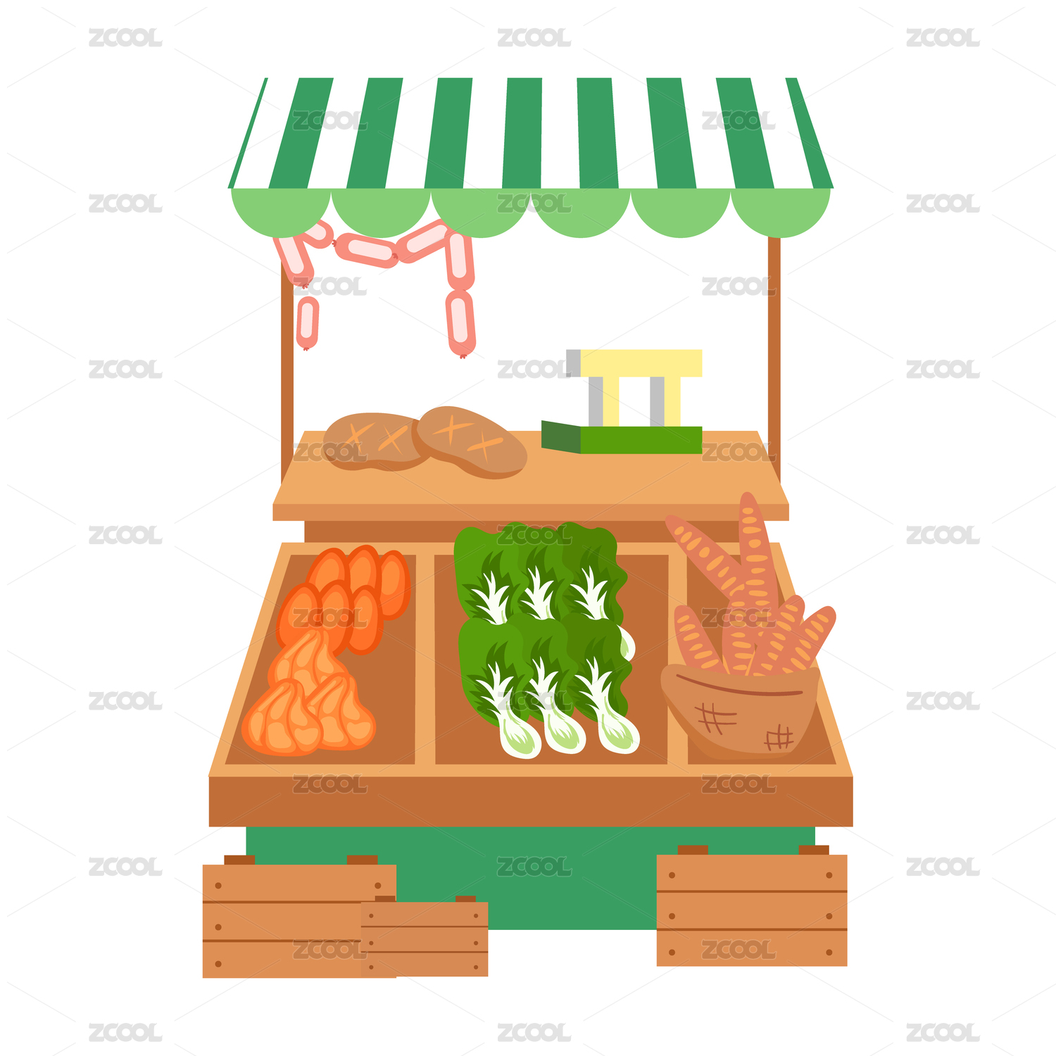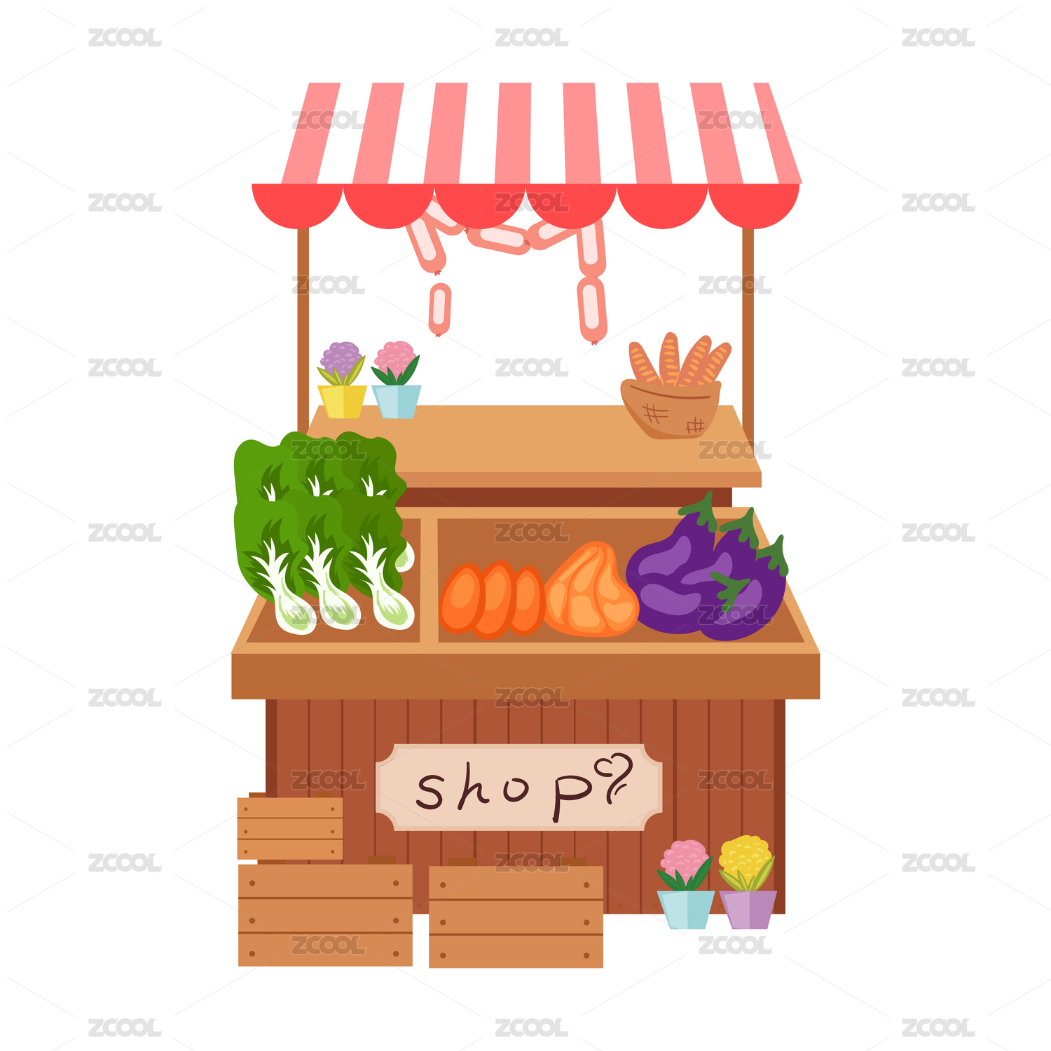 扁平化卡通蔬菜商店櫥窗展柜商品陳列購物架