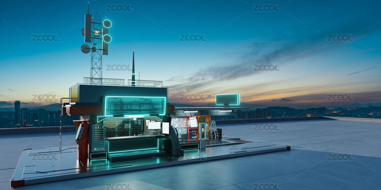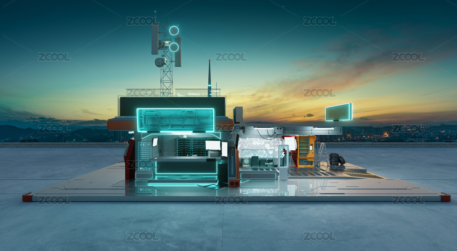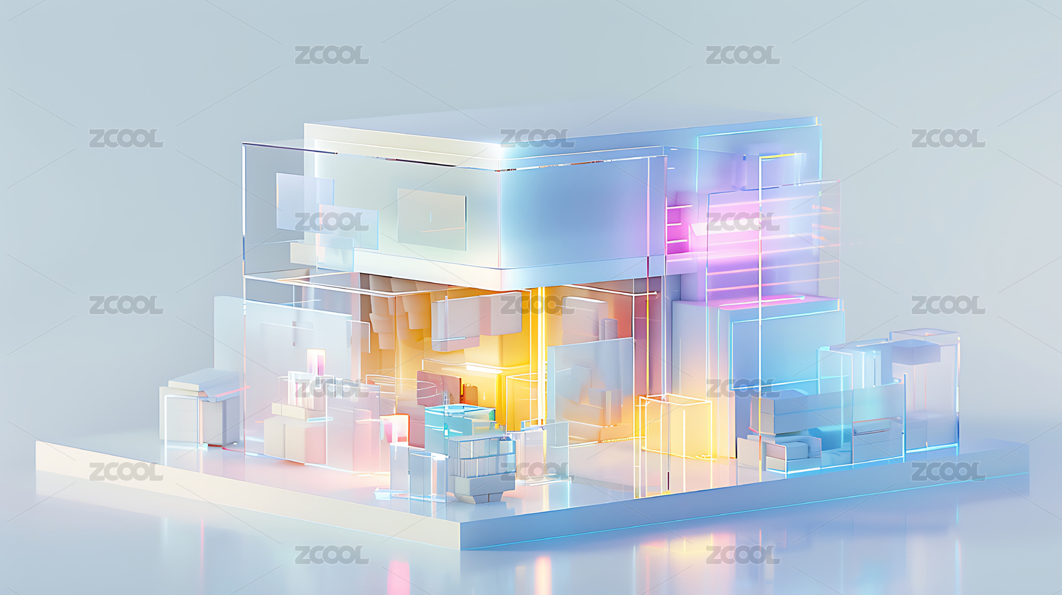 藍(lán)色線條結(jié)構(gòu)商店店鋪 3D渲染