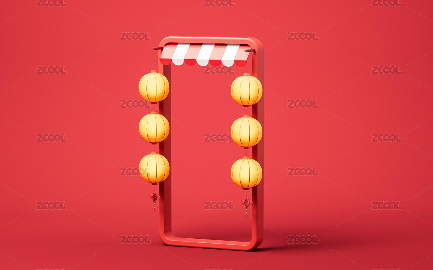電商店鋪與中國風(fēng)古風(fēng)燈籠3D渲染