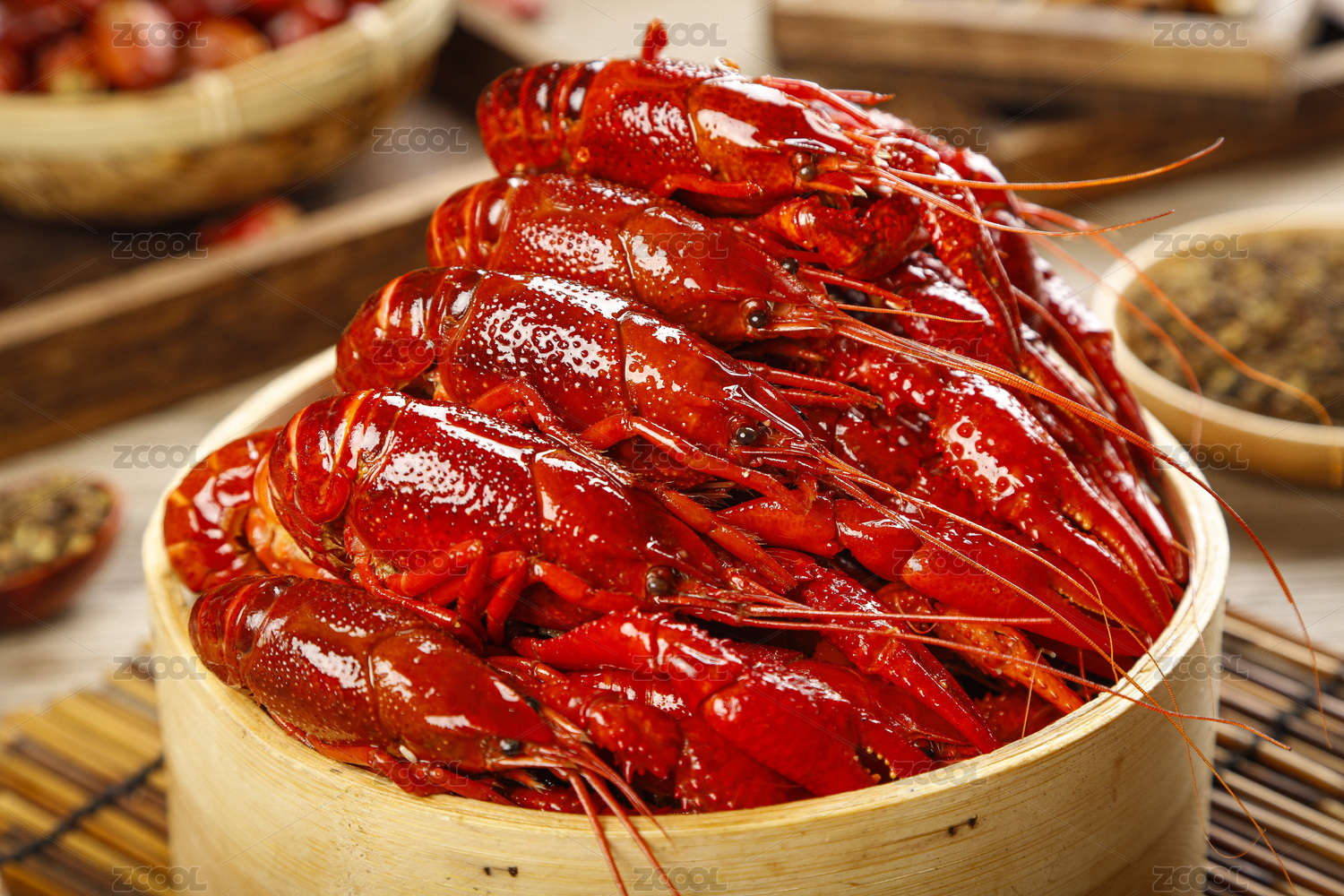 竹底上放著一籠清蒸小龍蝦