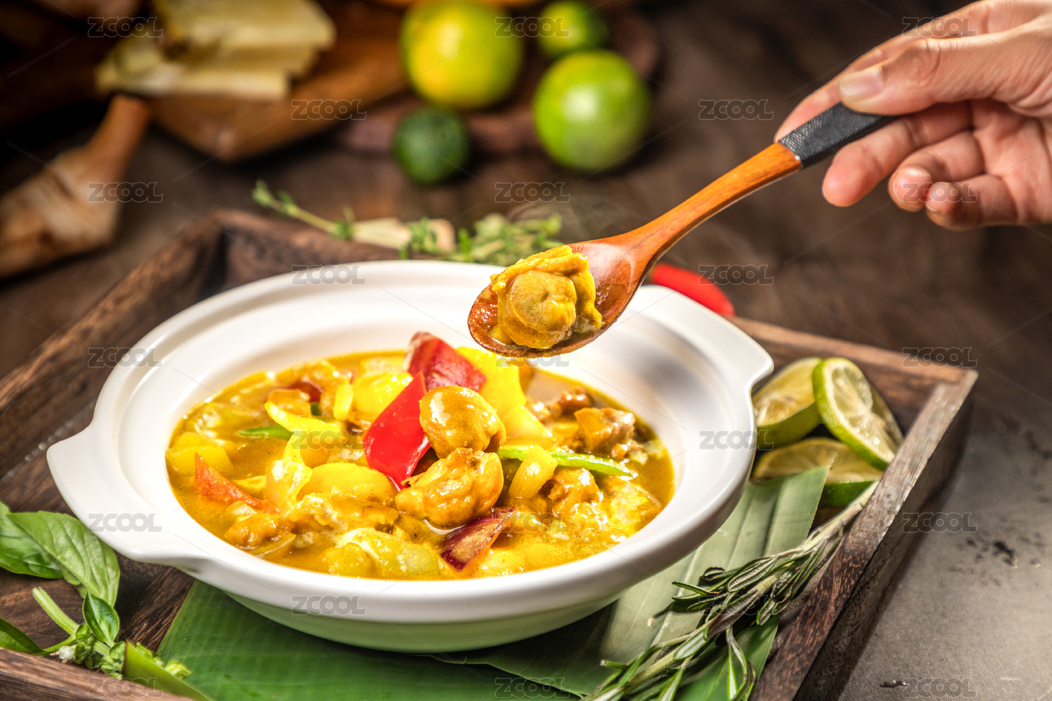 白砂鍋里有一份椰香咖喱雞