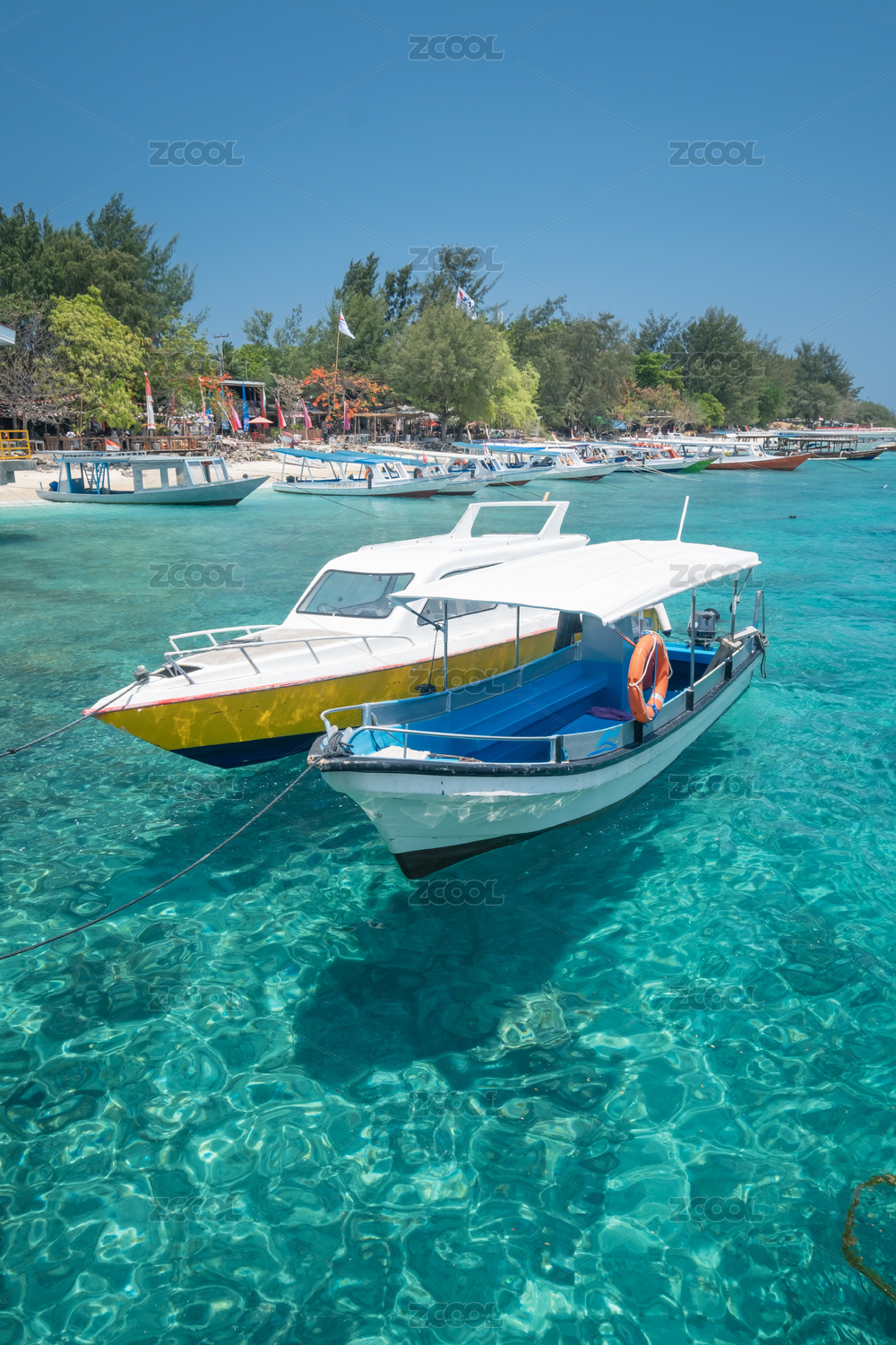 印尼Gili吉利群島特拉旺岸碼頭船舶海濱