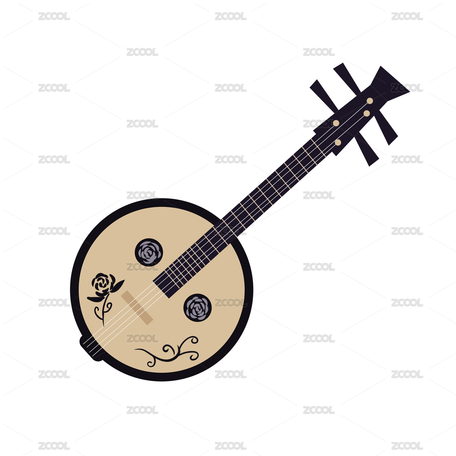 卡通手繪傳統(tǒng)彈撥樂(lè)大阮插畫(huà)