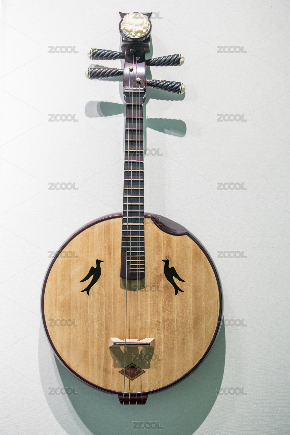放在桌子上的中國(guó)傳統(tǒng)樂(lè)器中阮的漢官帽琴頭