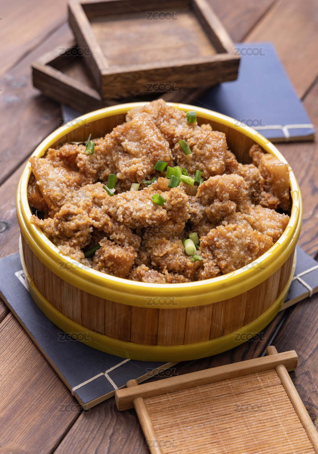 小蒸籠上的川味粉蒸肉粉蒸五花肉