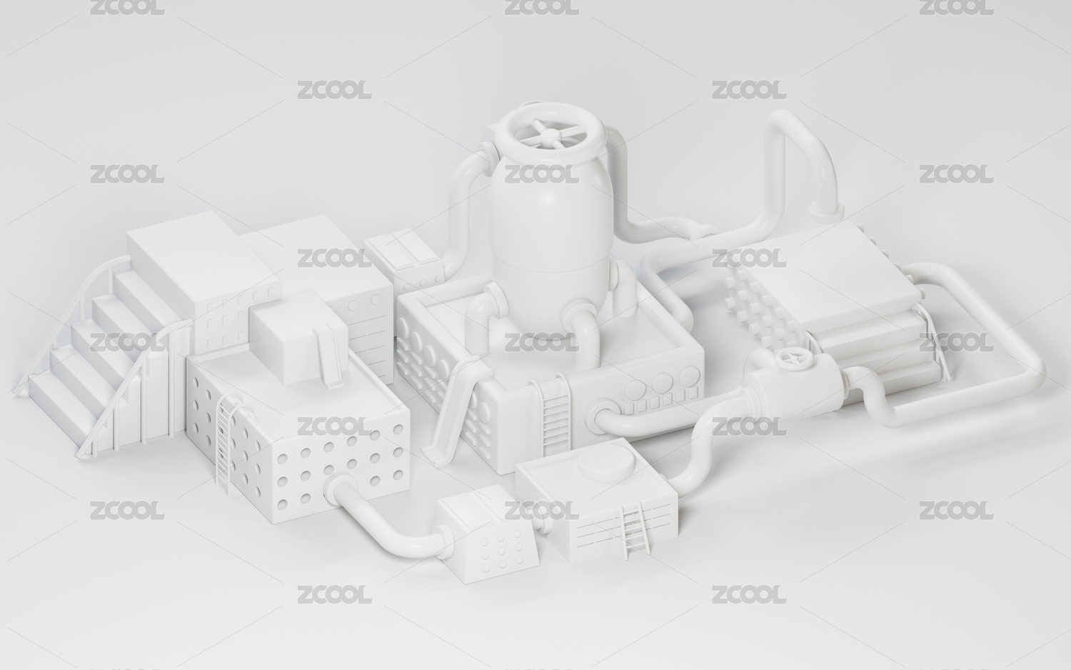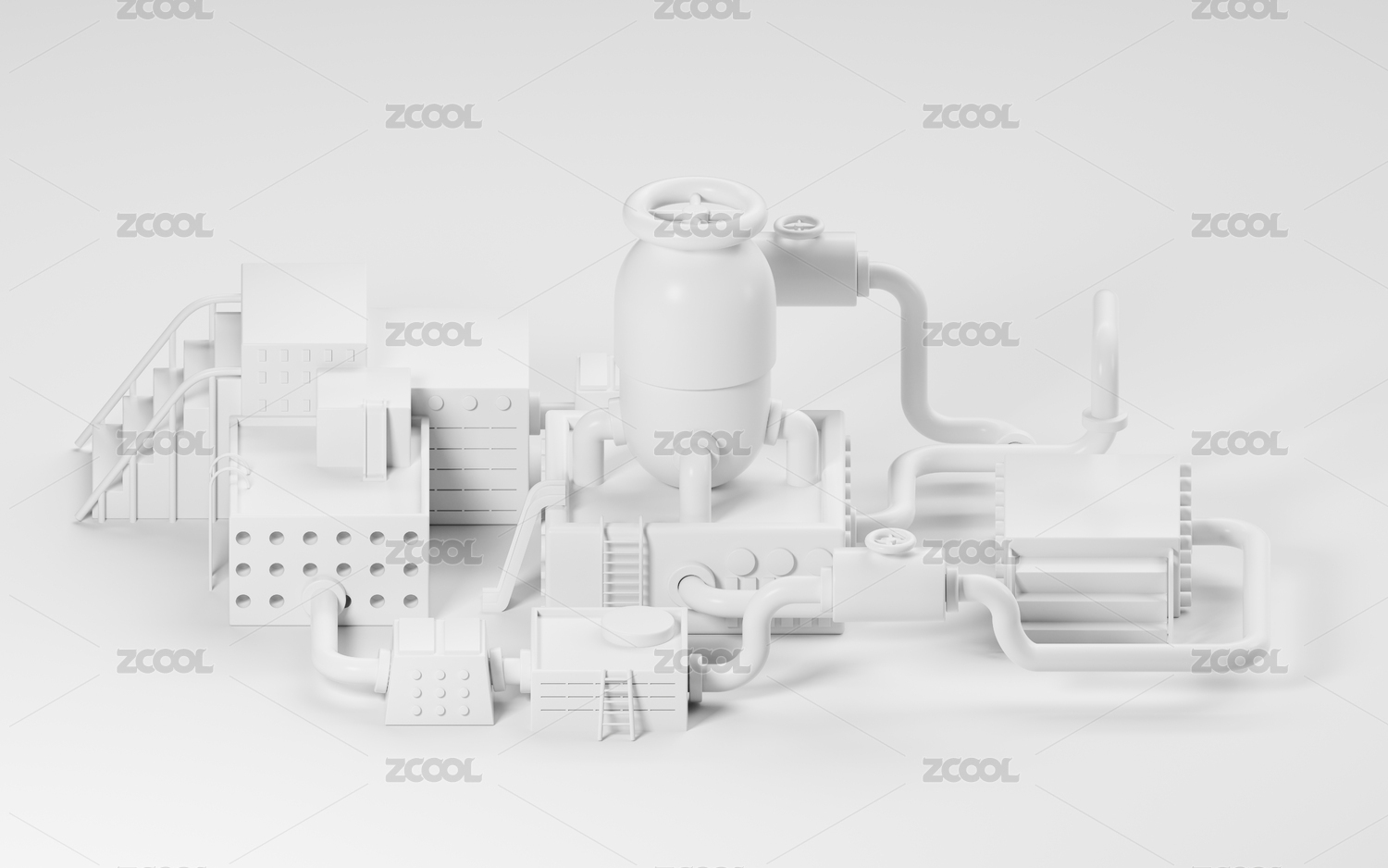 卡通工廠模型的展示臺3D渲染