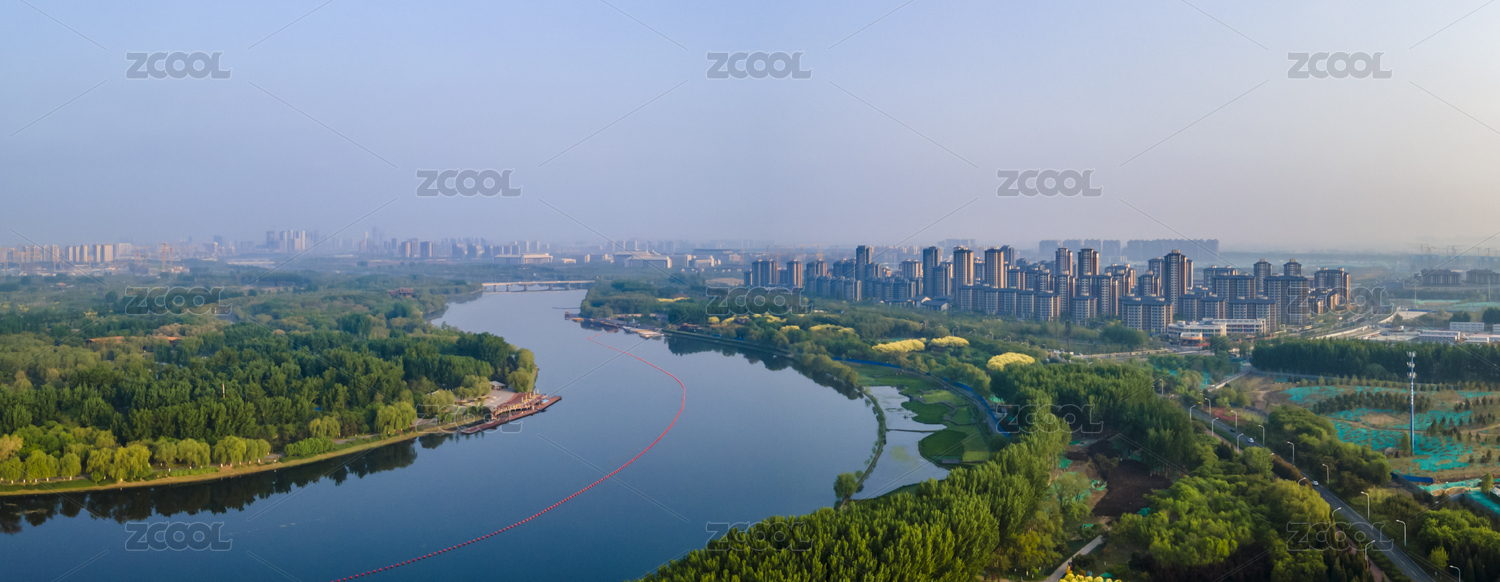 中國(guó)北京通州大運(yùn)河森林公園青山綠水航拍俯視圖