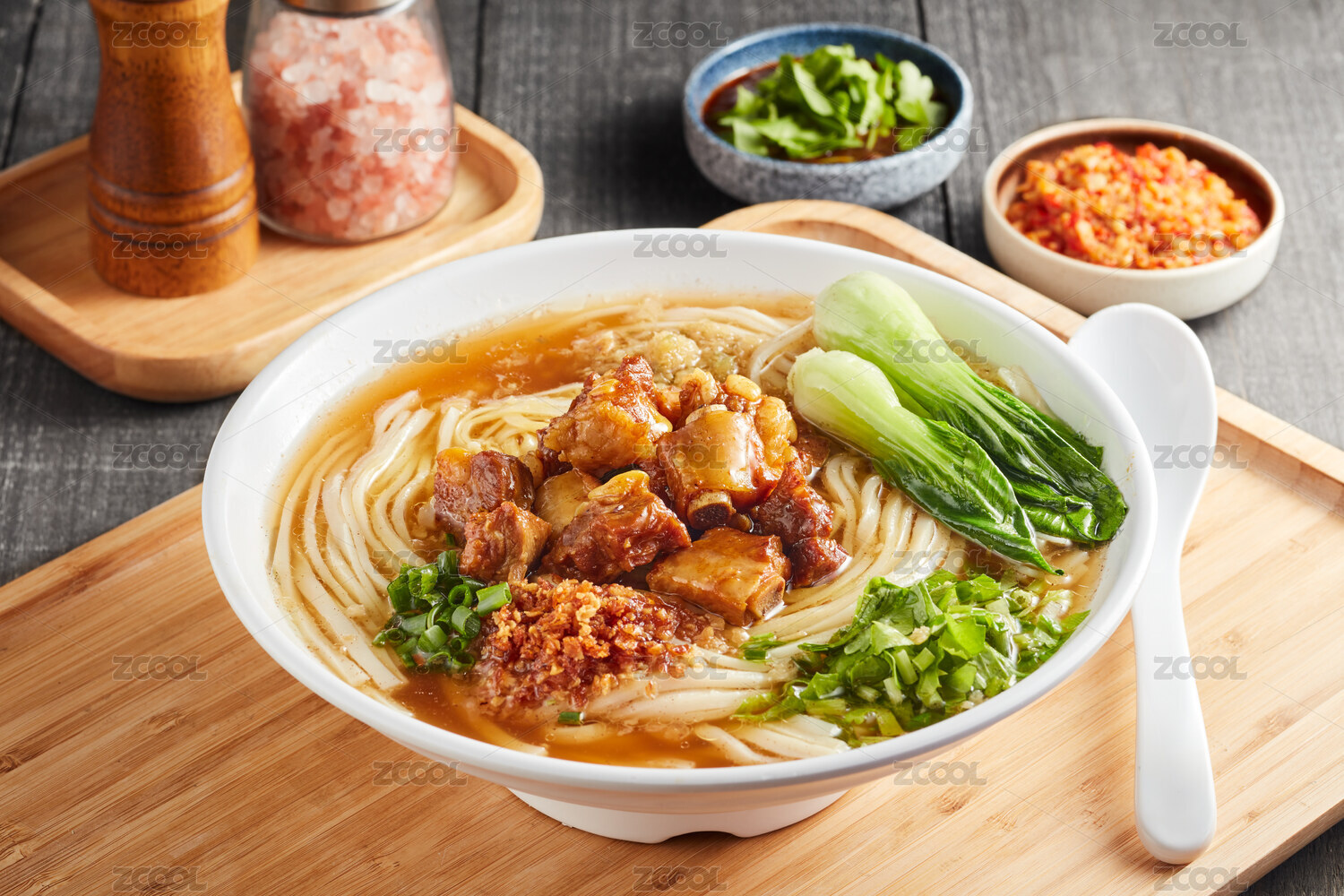 木桌背景傳統(tǒng)潮汕牛肉丸粿條湯粉