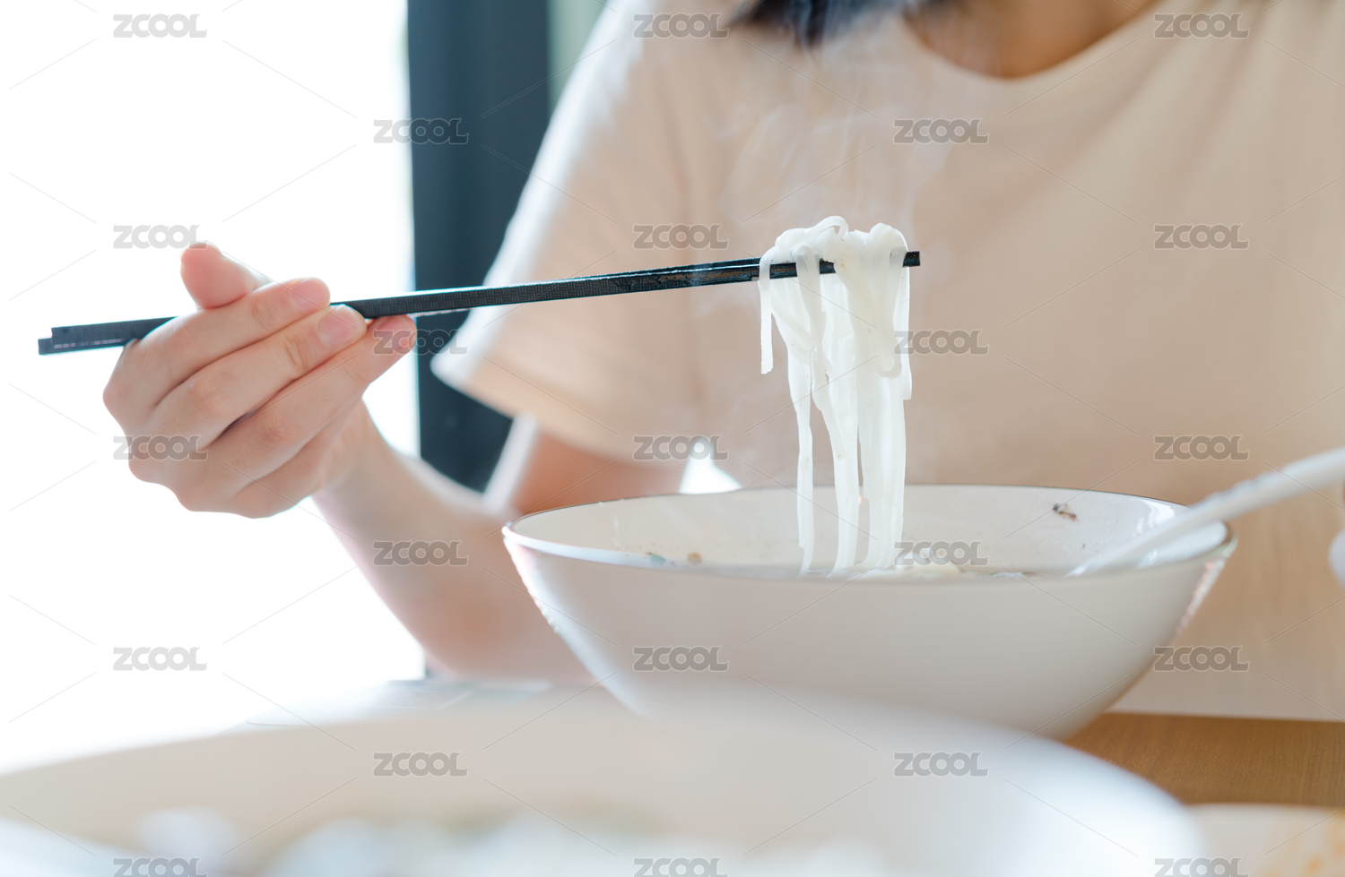 女生用筷子夾粿條吃
