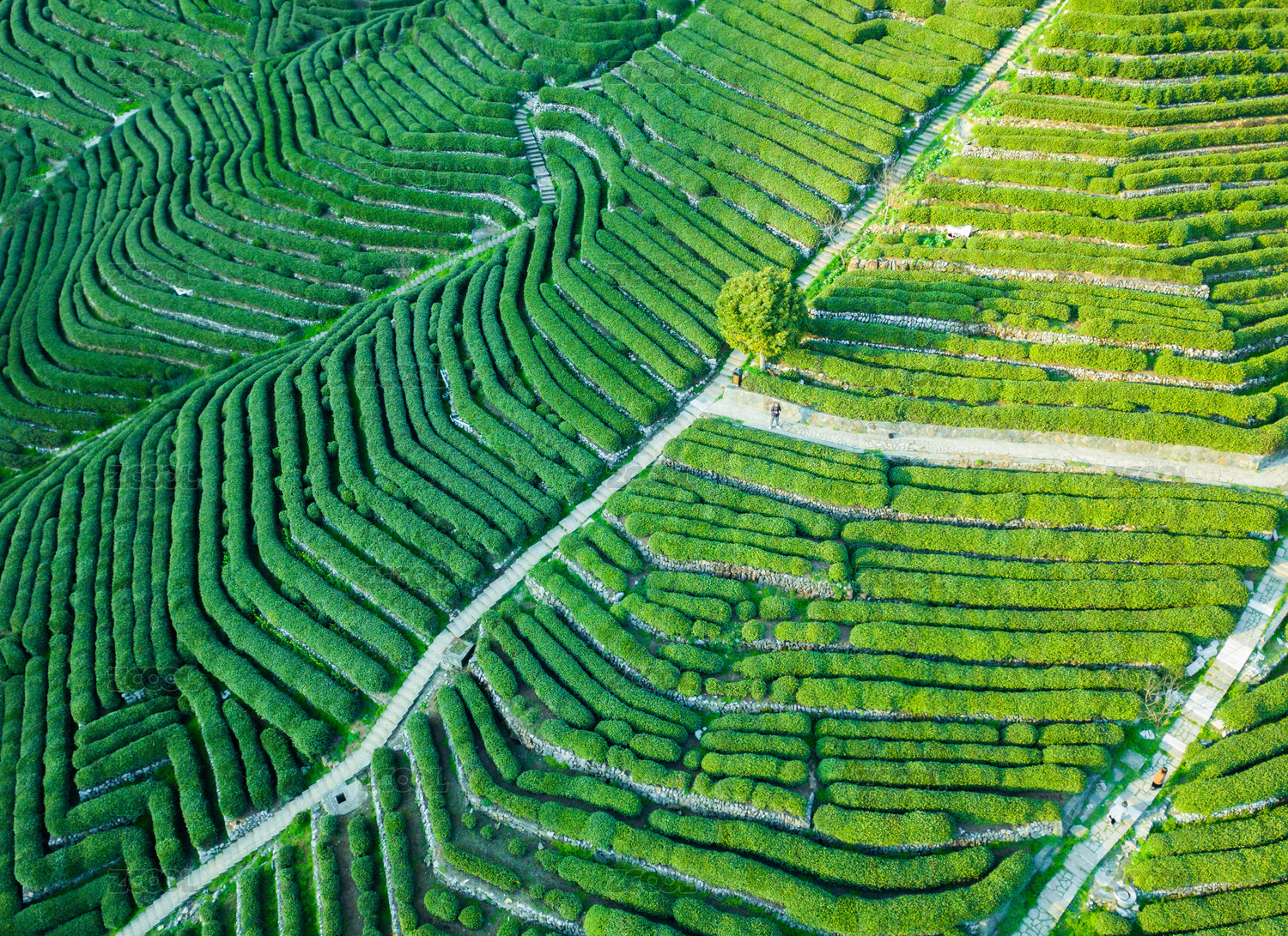 航拍杭州西湖龍井茶園 十里瑯珰 龍井問茶