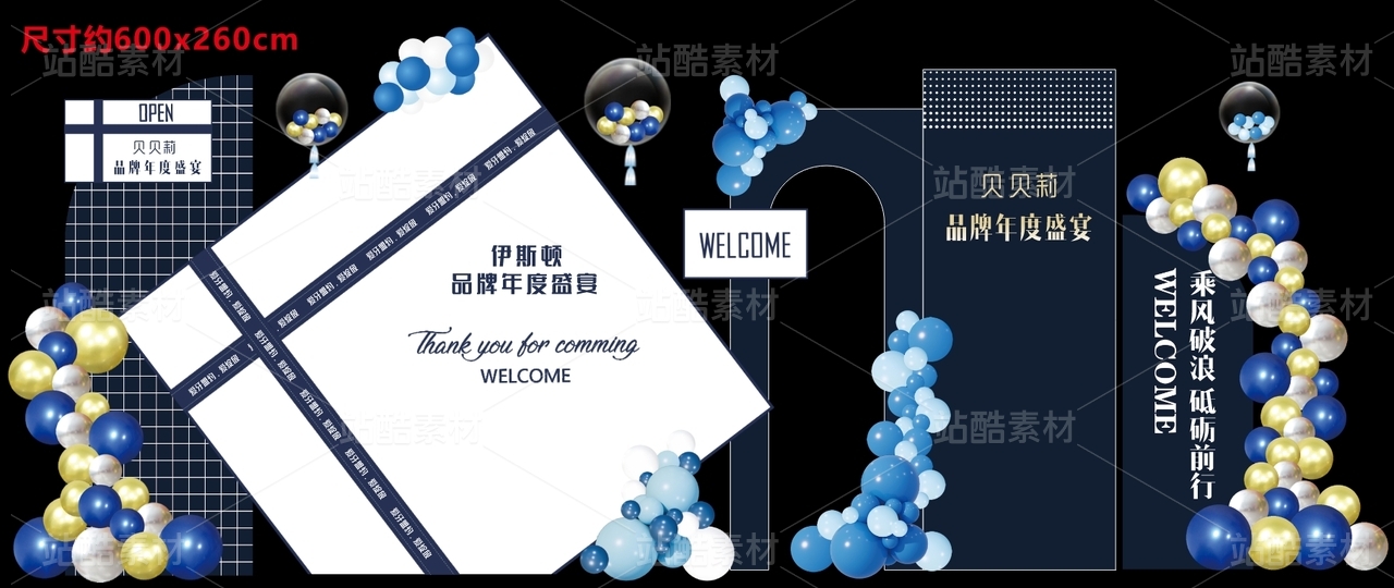 年會(huì)盛典年終年度主題氣球派對(duì)主題布置舞臺(tái)素材KT板