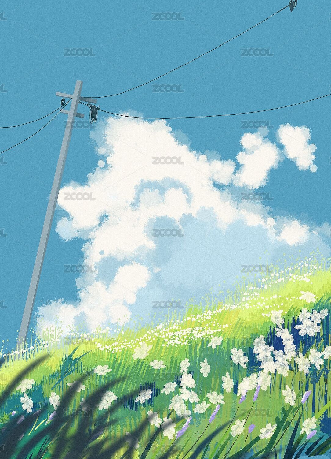 藍(lán)天白云春天夏天風(fēng)格氛圍感唯美壁紙海報(bào)