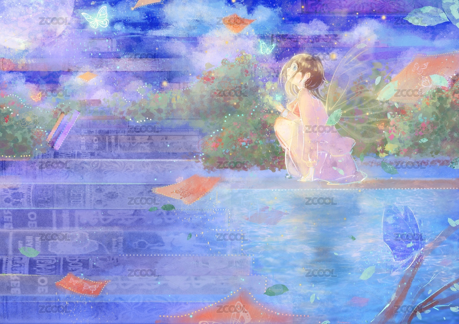 粉紫色唯美風(fēng)格氛圍感插畫(huà)