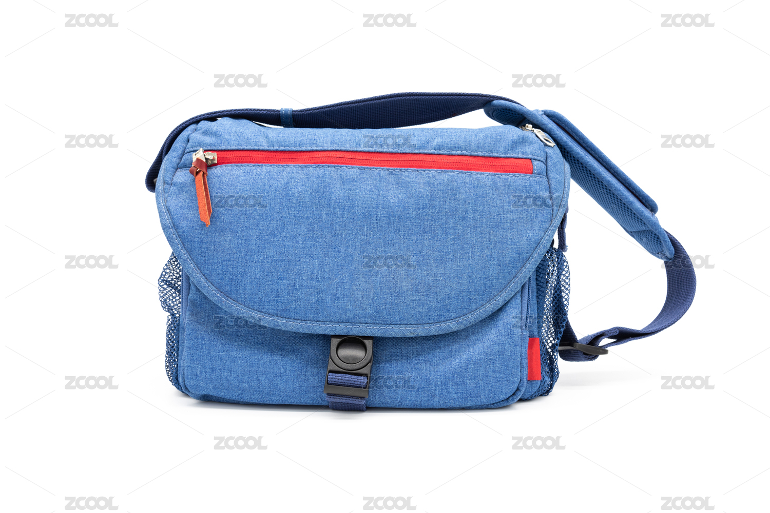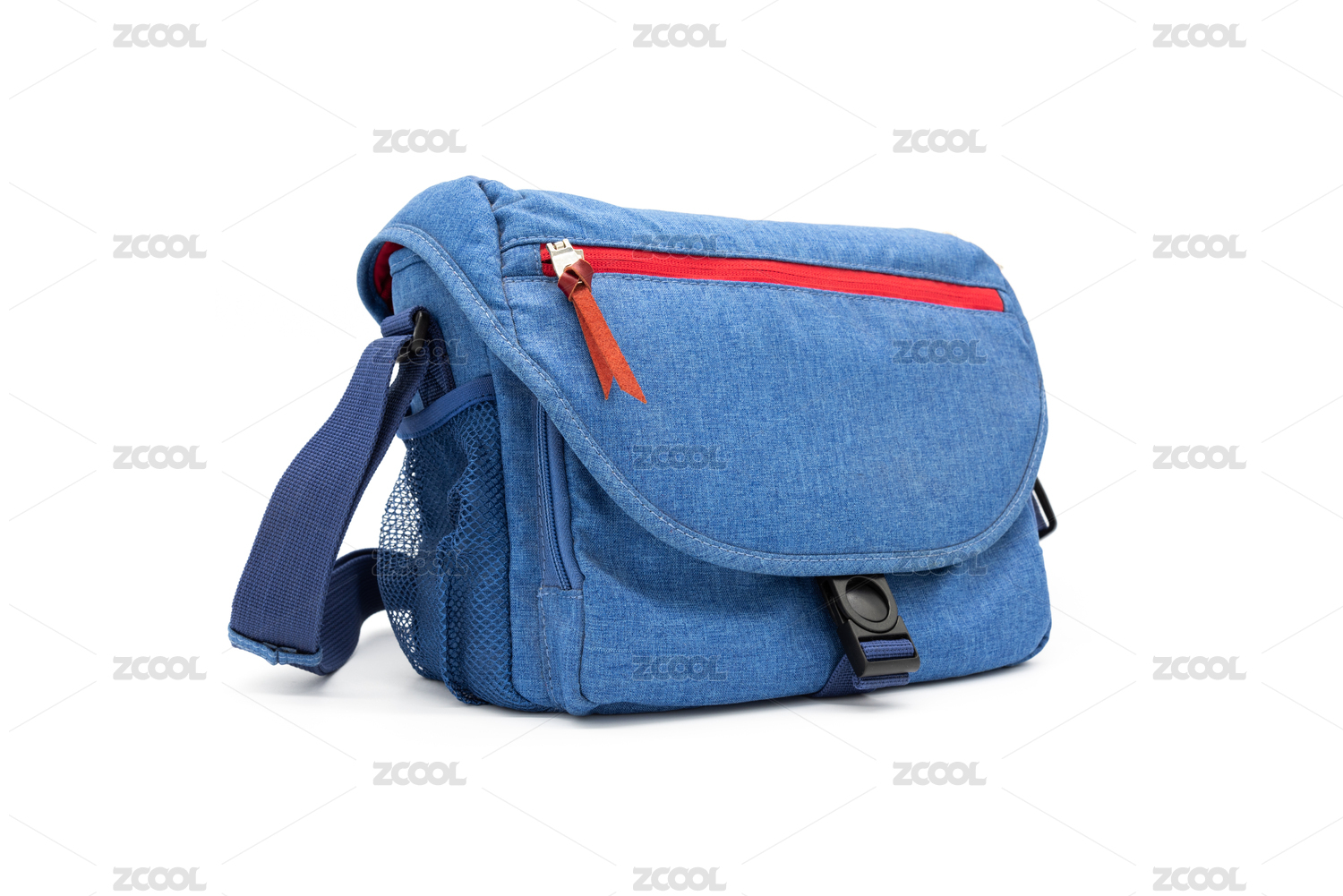 白底一組藍(lán)色帆布單肩攝影背包